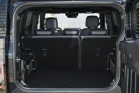 车尾的设计延续了山海系列的经典元素:纵向布局的透明尾灯组像两颗晶莹的“山石”,在夜晚亮起时清晰醒目;侧开式尾门保留了传统越野车的实用基因,搬运大件物品时不用弯腰低头;外挂式备胎依然是“硬核身份”的象征,而备胎罩中央的品牌标识,则像一枚小小的勋章,悄悄诉说着它的归属。更值得一提的是,后包围左右两侧的造型调整,据说是为了适配组合辅助驾驶的感知硬件——科技与硬派的融合,在这里悄然发生。