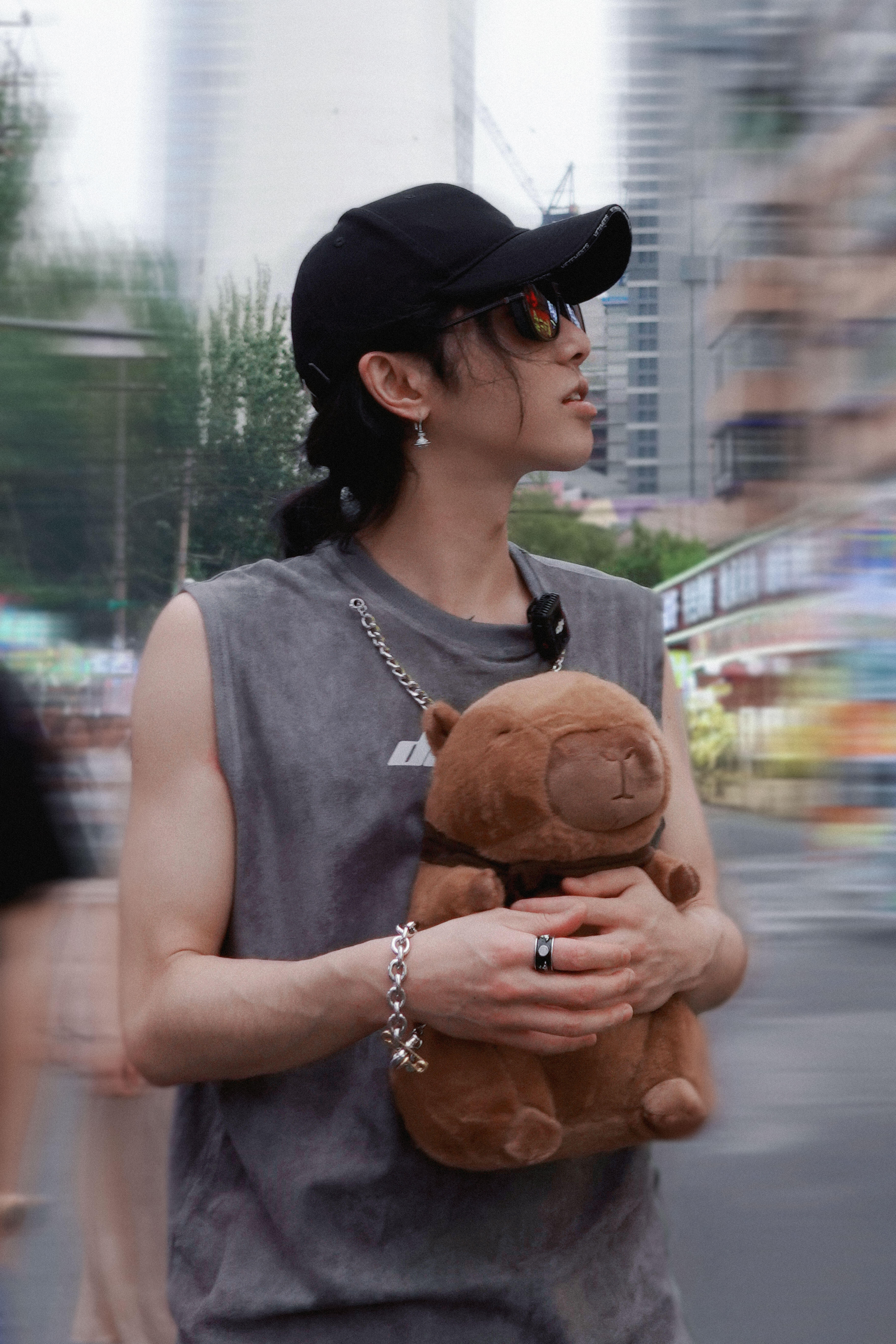 当日,华晨宇穿着一身休闲的灰色T恤搭配黑色运动短裤,头上扎着标志性的小揪揪,脸上还架着一副酷酷的墨镜,怀里抱着一只可爱的卡皮巴拉毛绒玩偶,瞬间化身为一个普通的大男孩穿梭在熙熙攘攘的夜市中。他时而在烧烤摊前大快朵颐,品尝沈阳特色烤串;时而驻足套圈游戏摊位前,专注地投出手中的圈;甚至还拿起玩具枪,体验射击游戏,玩得不亦乐乎,完全沉浸在沈阳夜市热闹的氛围里。