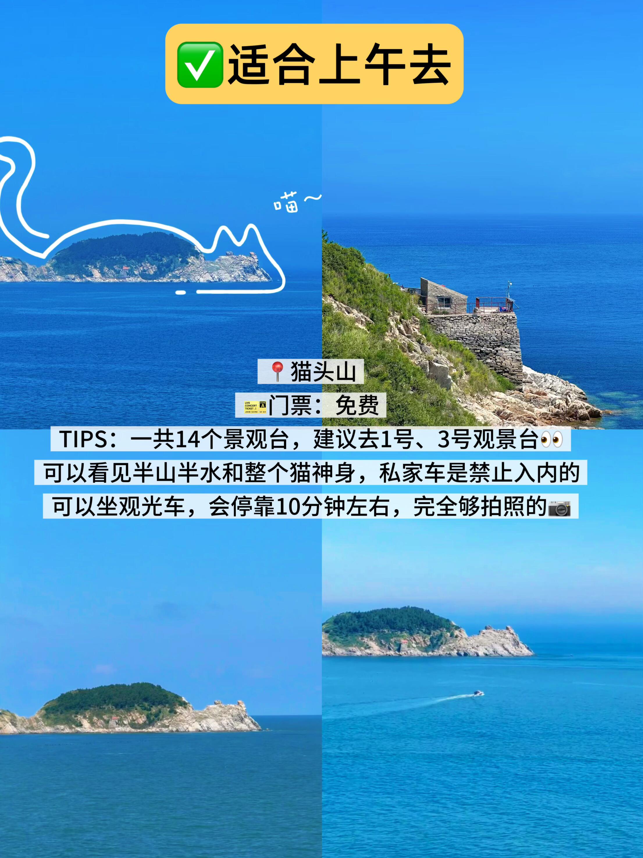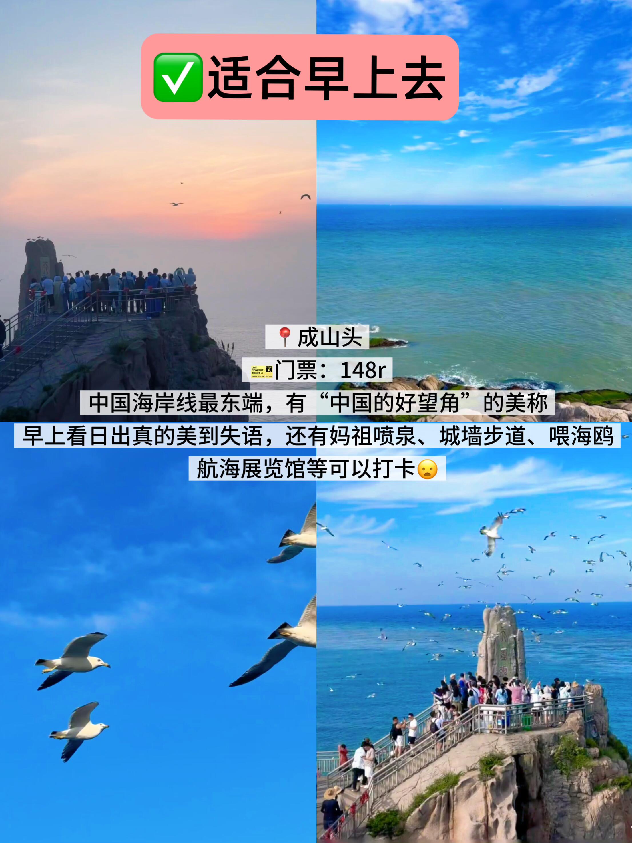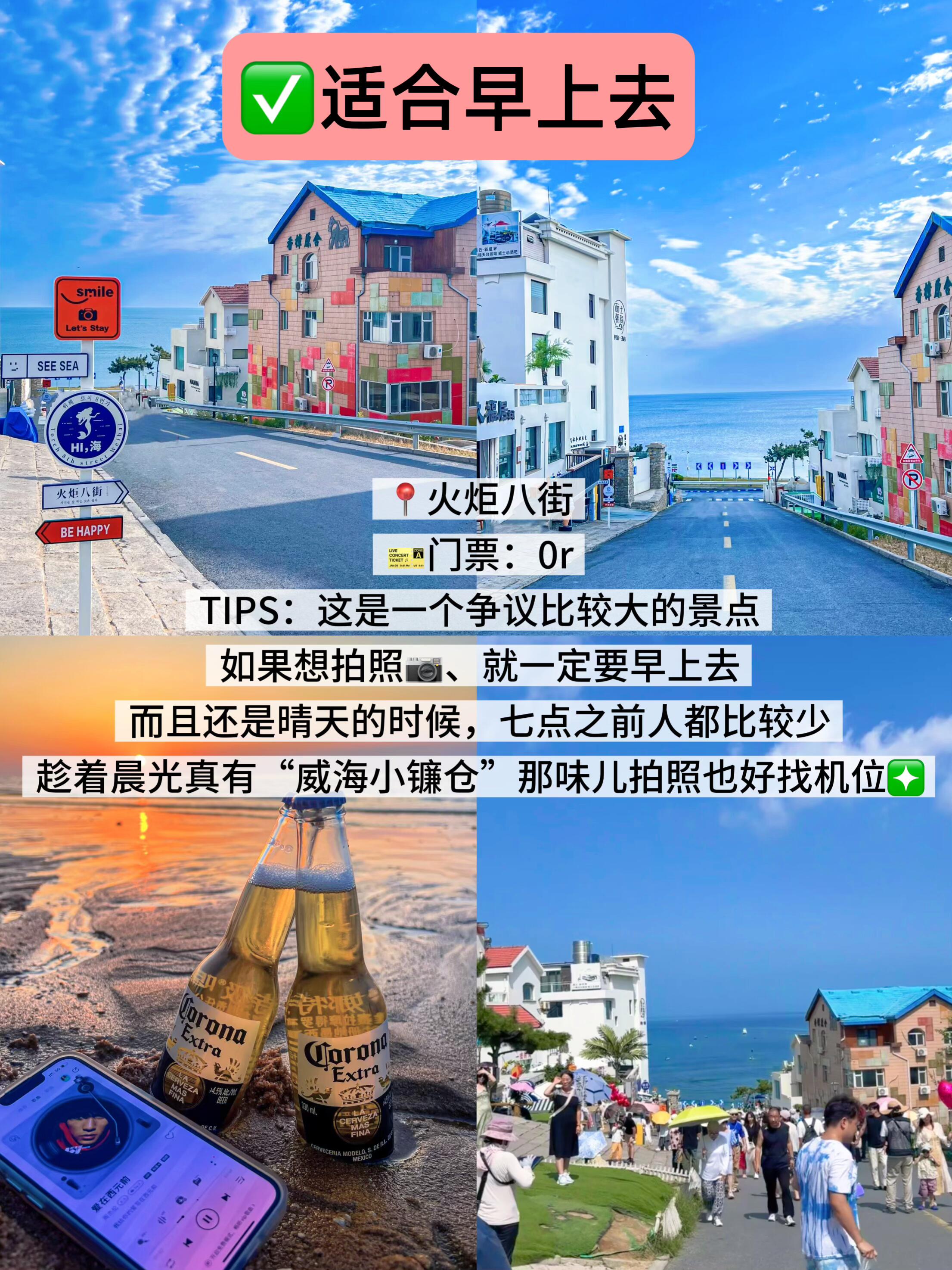 TIPS:这是一个争议比较大的景点,如果想拍照📷、就一定要早上去,而且还是晴天的时候,七点之前人都比较少,趁着晨光真有“威海小镰仓”那味儿,拍照也好找机位❇️