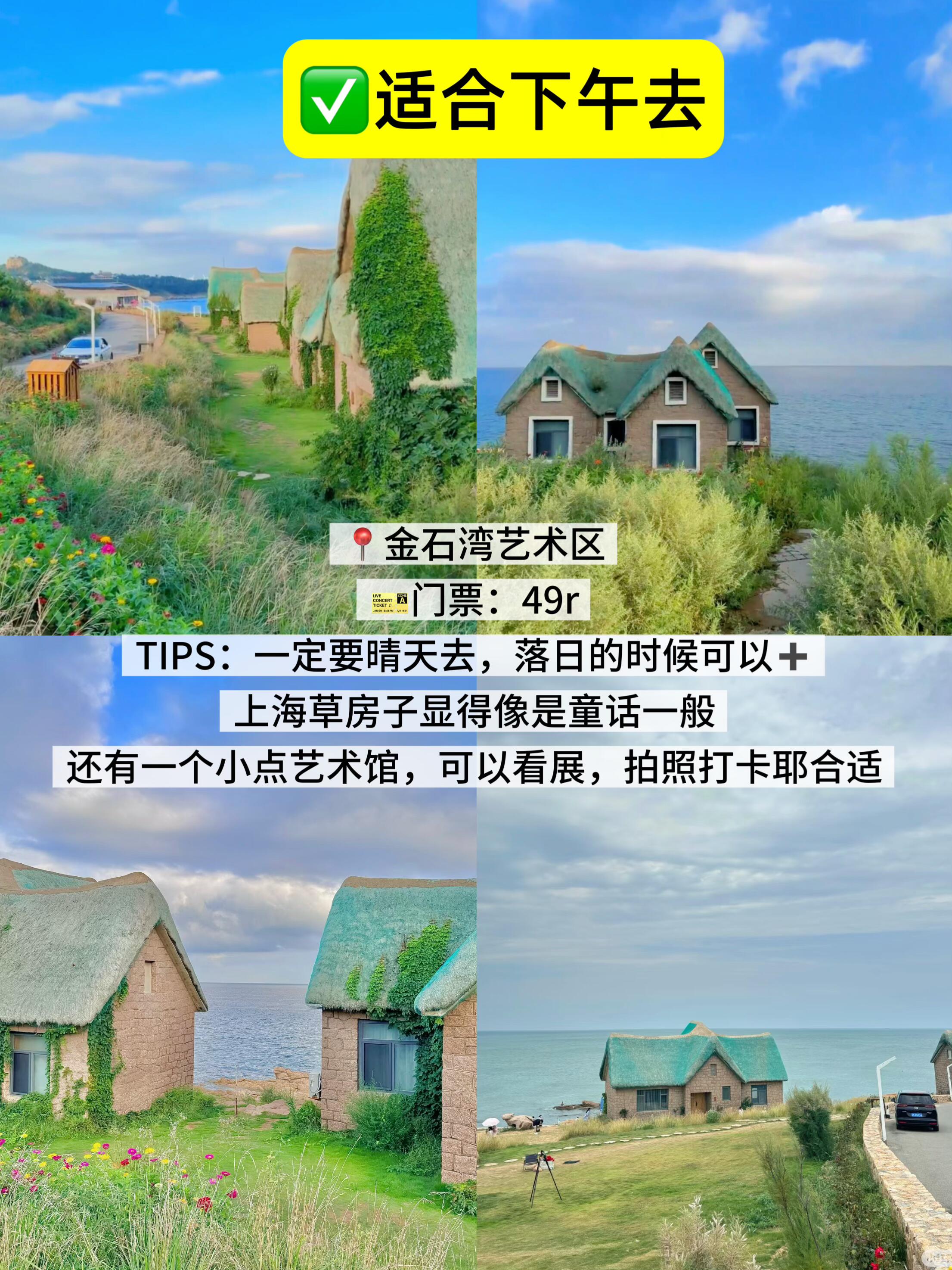 TIPS:一定要晴天去,落日的时候可以➕上海草房子显得像是童话一般,还有一个小点艺术馆,可以看展,拍照打卡耶合适