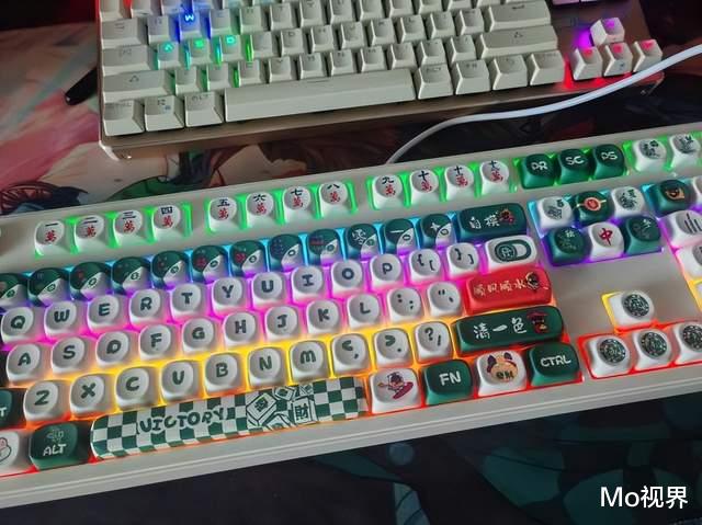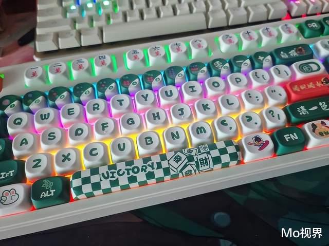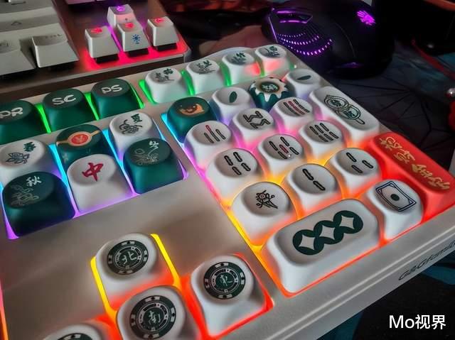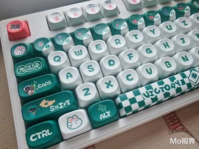 外观上来看,麻将键帽还是非常的让人眼前一亮的,对于喜欢打麻将的人来说,应该也是一种特别亲切的存在。另外,绿色系配色对眼睛感觉也非常的友好,不用担心时间看长了键盘会不舒服。不过话说回来,很多人键盘都盲打了,好像也不太在意配色,但是自己喜欢的配色电子产品使用起来还是会让人心情更愉悦。毕竟,上班都已经够烦躁了,键盘用自己喜欢的也是非常有必要的。