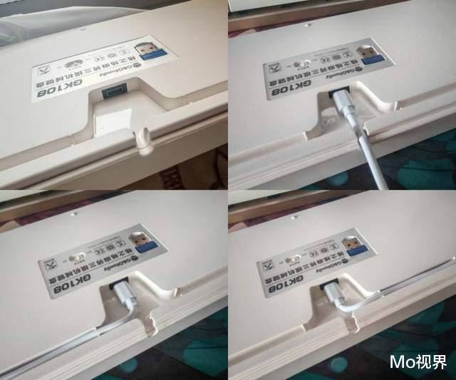 格之格GK108数据线卡槽有三个方向可以使用,这个倒是方便了每一个想用有线键盘的人。比如我的电脑数据线是可以直接从显示器背后连接先驱的,那么我直接把线卡在背后槽就可以了。我闺蜜的机箱是放在数据线右方区域的,所以把线卡在右边卡槽里会比较方便。这样子数据线不会一团乱,还不会让键盘这里翘着那里挤着,我觉得非常好。