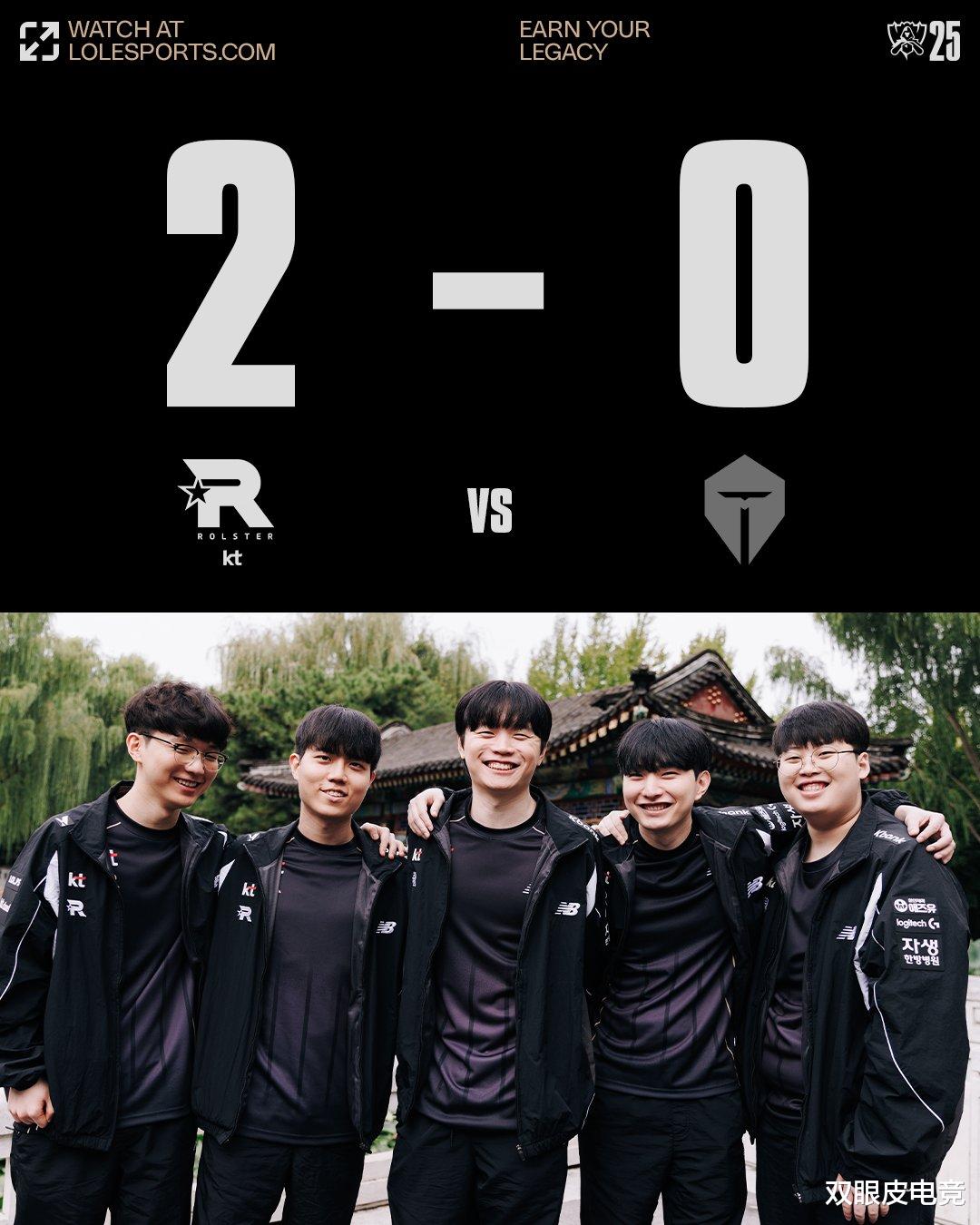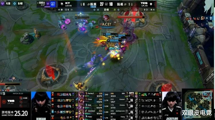 到了第二局本以为TES会稳健一些,但没想到还是同样的结局。Kanavi的动向全被TK研究透彻,导致自己一整局没做到什么事情,再加上前期并没有打出对位压制,反而让BDD的蛇女以及Cuzz的巨魔频繁找到了节奏。这样一来彻底把TES的节奏打乱,KT顺利滚起了雪球,在不到30分钟就拿下了比赛的胜利,也成为了首支进入8强的队伍。