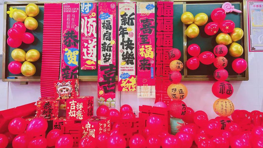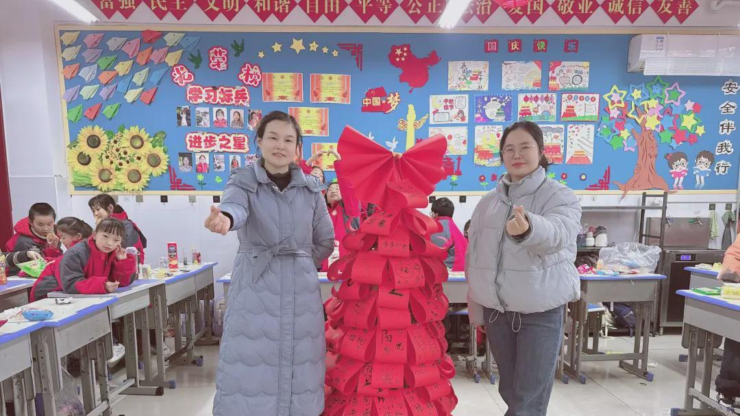 遇见是故事的开始,为了这次特殊的“约会”,为了孩子们热切期待,老师与孩子们以及爱心家长精心筹备,提前安排。喜庆的节日彩带窗花、火红的对联、大大的福字、多样的板报设计、贴心的小零食……把节日氛围拉满!