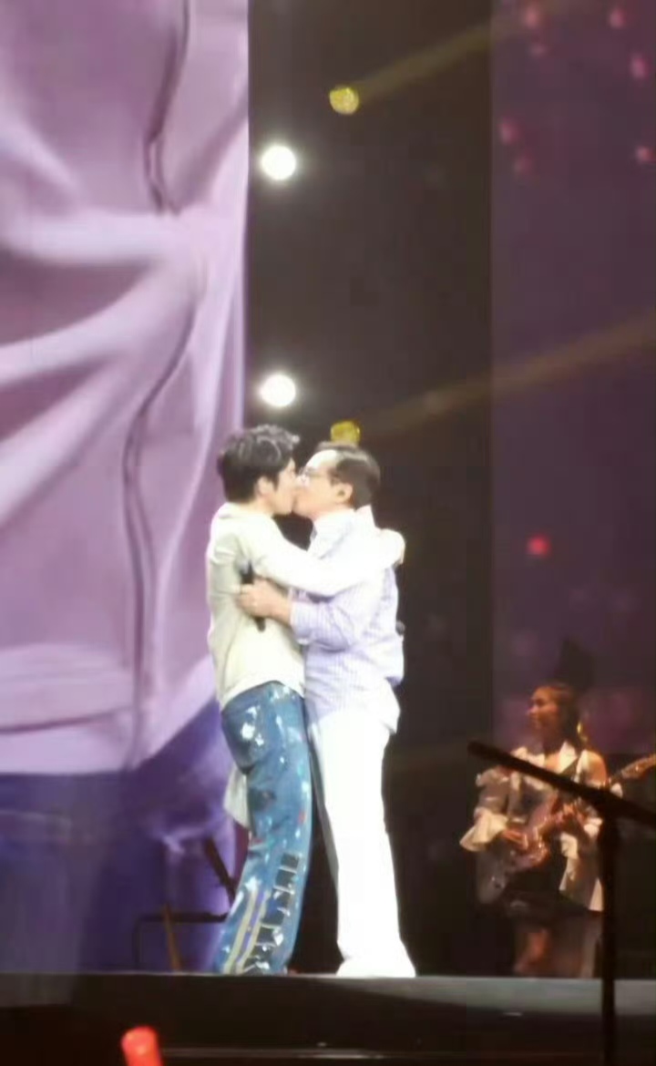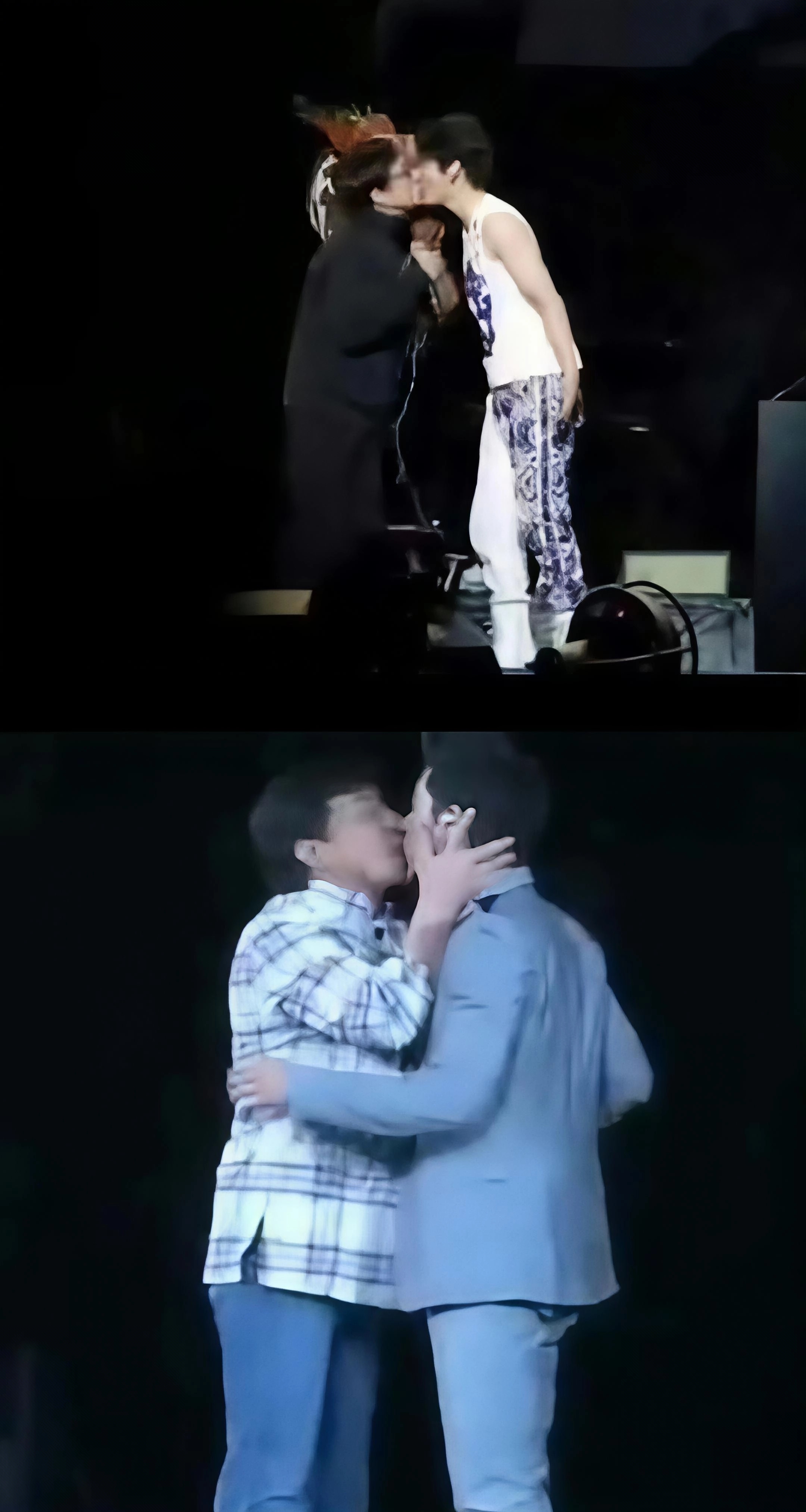 在合唱完《需要人陪》的余韵中,成龙俯身与王力宏的额头相触,随后两人出人意料地嘴对嘴亲吻,这一亲密互动被台下观众多角度拍摄记录,瞬间将“成龙王力宏亲了”的话题推上热搜榜首,引发全网热议。
