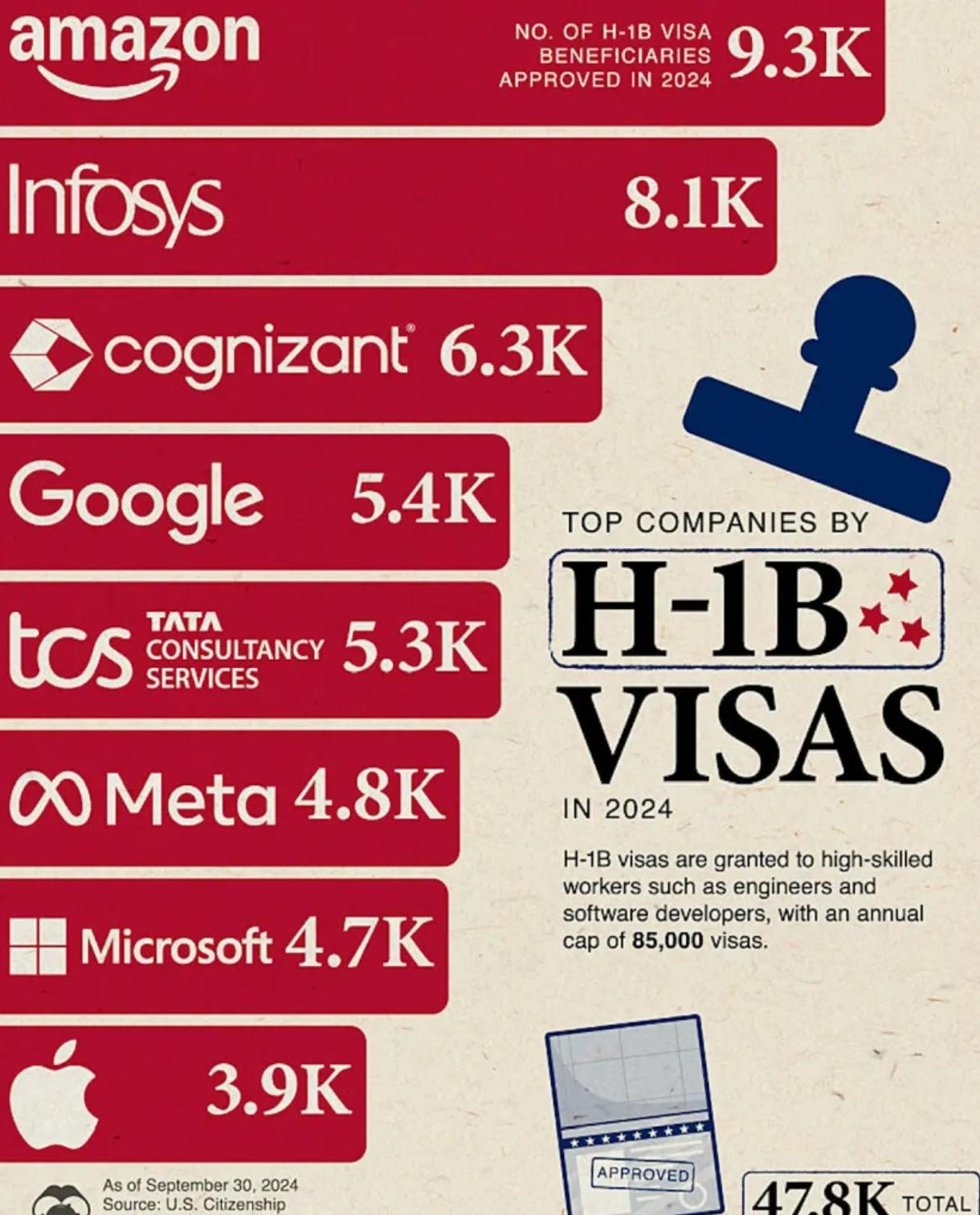 美国靠H-1B签证吸了几十年全球人才,硅谷一半技术骨干都来自海外,现在突然把门槛抬这么高,是嫌自己人才太多了?