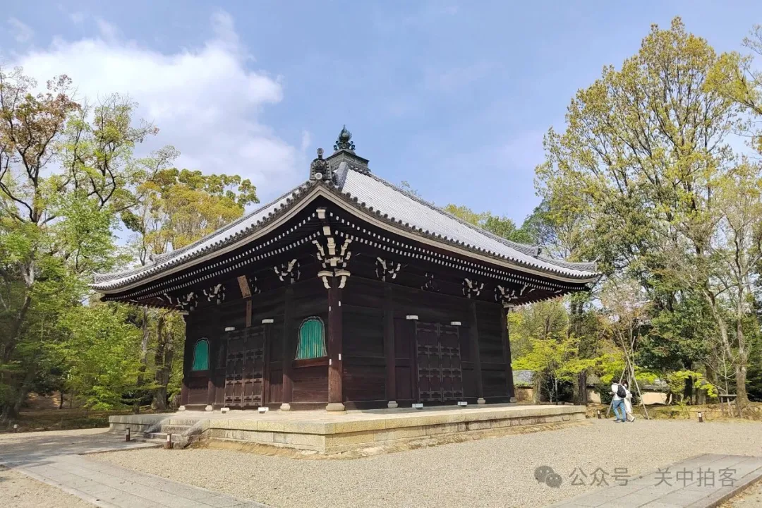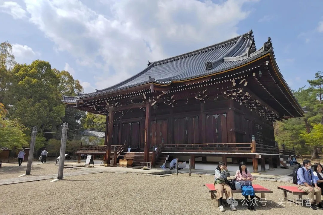 这里是仁和寺的正殿,位于寺院北部中心处,原本是建造于1613年京都御所的紫宸殿。宽永年间(1624—1644),将紫宸殿移筑于此地,殿内供奉着阿弥陀三尊和四大天王像。