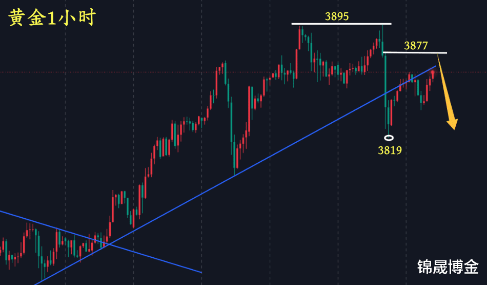 首先今天黄金还是建议不要在高位去追多,前一天在3895高点回落,日线收了一个倒锤线。昨天二次冲击3895高点,形成双顶压制下跌,美盘连阴走弱,最低触及3819,凌晨反弹收复一部分空间,日线收了一个阴十字。