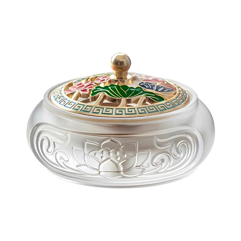 而香炉盖上的珐琅彩花卉图案,同样蕴含深意。牡丹代表富贵吉祥,梅花寓意坚韧高洁 ,它们与荷叶相互映衬,丰富了文化内涵,使香炉成为承载美好祝愿与文化传承的载体 。在袅袅香烟中,人们感受着传统文化的熏陶,体悟着古人对美好生活的向往 ,让这份跨越时空的寓意,在现代生活中延续。