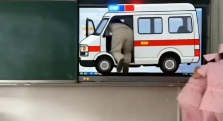 人!直接钻到电视机里的救护车上了?!!