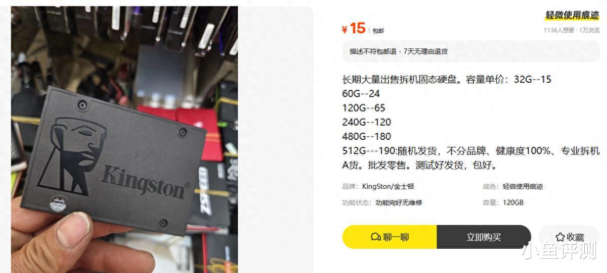 你敢信?一块固态硬盘,最低只要15块钱——没错,不是U盘,是正儿八经能装系统的SATA固态!最近在二手鱼上刷到一堆拆机盘,32G卖15元,60G才24元,连512G的大容量也只要190块,还号称“健康度100%、专业A货”。