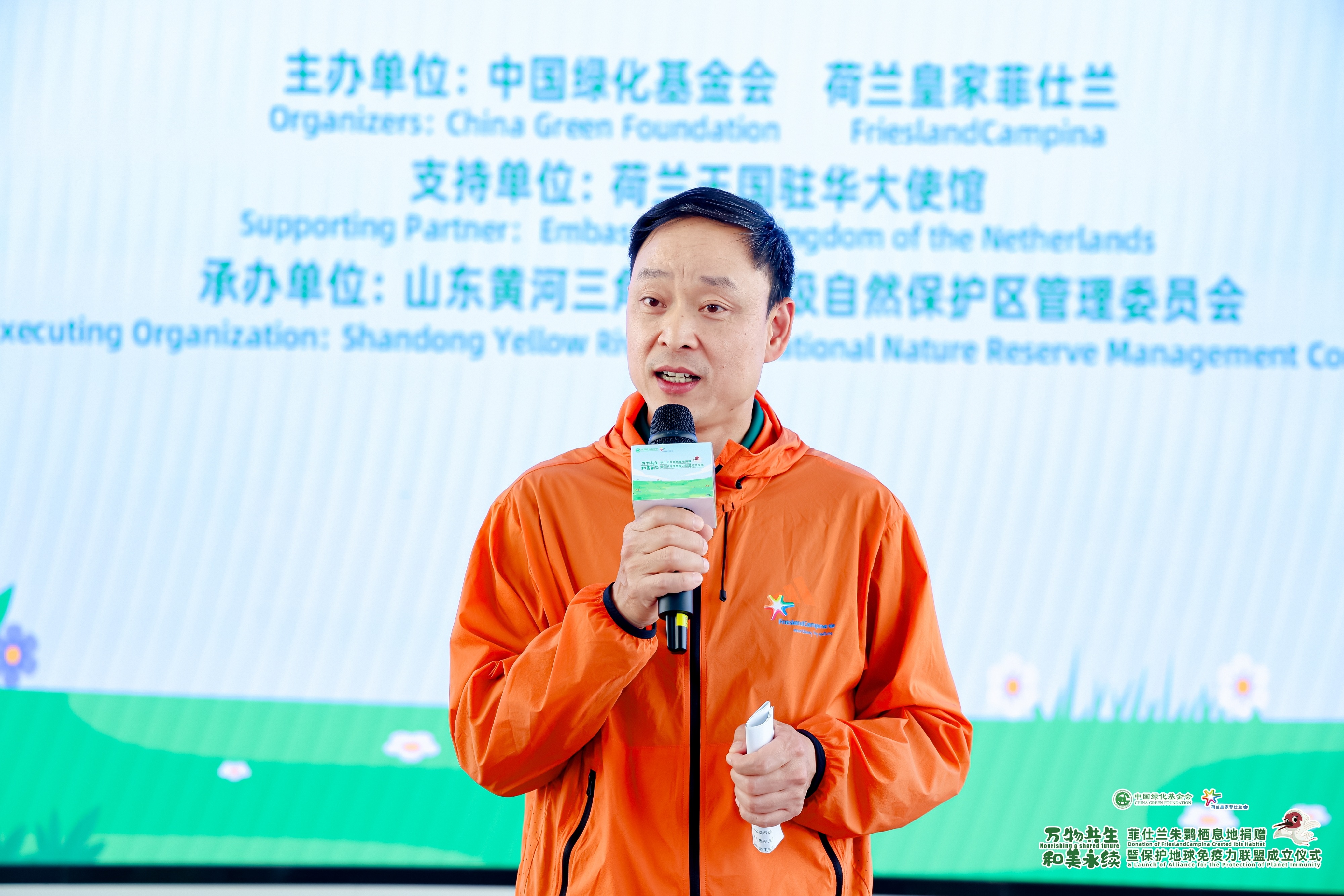 荷兰王国驻华大使馆农业参赞施米特分享了荷兰在生物多样性保护方面的愿景和理念,并对黄河三角洲湿地保护工作与朱鹮种群恢复工作给予了高度赞赏,他表示:“荷兰已将生物多样性融入各项政策领域,其重点行动包括:推动自然友好型农业、制止森林砍伐、以及加强海洋与陆地生态系统的保护,同时鼓励私营部门将生物多样性纳入其战略。我们深受菲仕兰与中国绿化基金会联合行动的启发,他们在湿地保护、濒危物种保护、产业链相关方参与以及儿童可持续发展教育等方面的努力,与《昆明-蒙特利尔全球生物多样性框架》的目标高度契合。今天的活动更搭建了一个跨领域、跨国界的协作与创新平台,激励我们进一步加强合作、共享知识、携手造福人类与地球。”