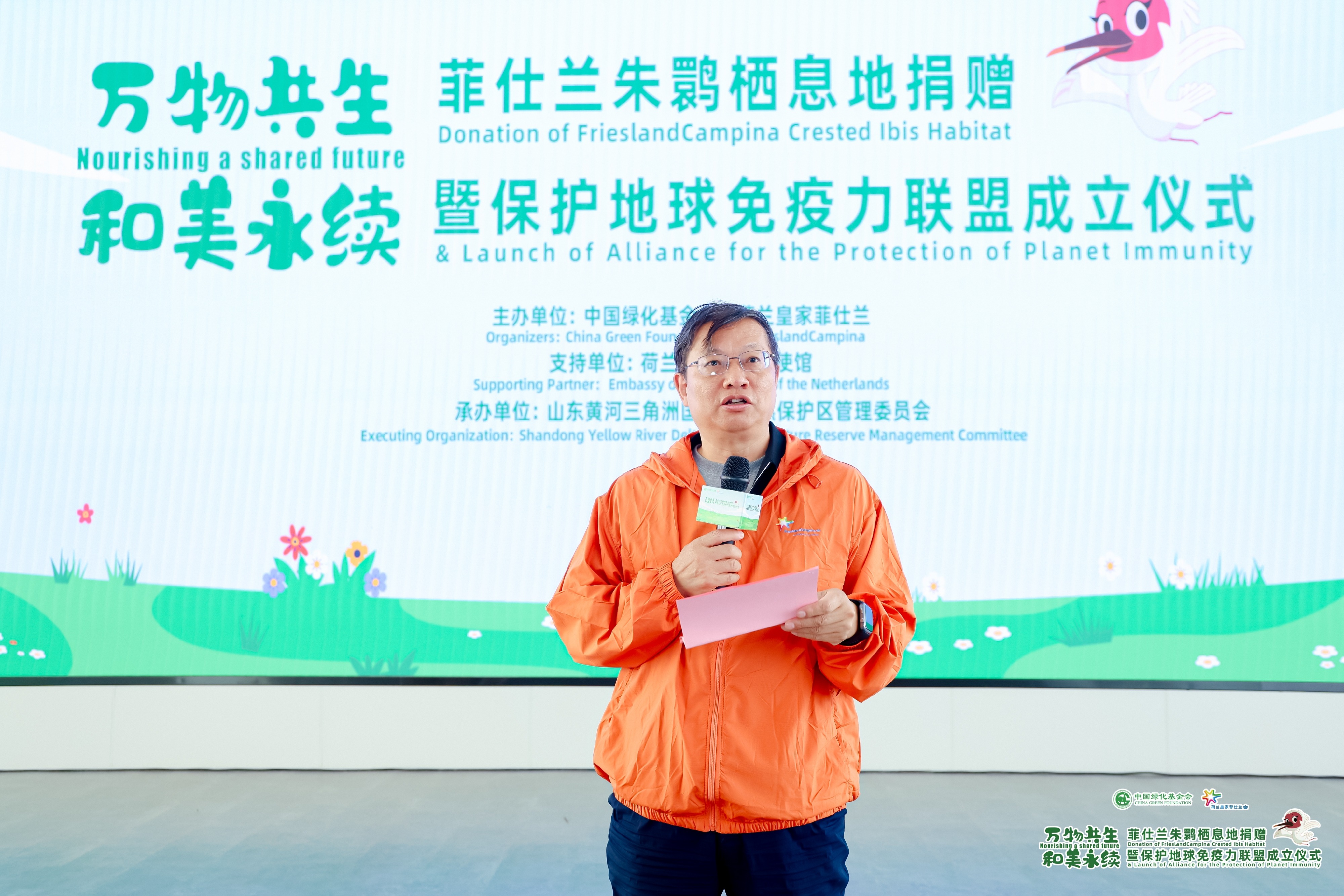 2025年5月18日,在山东黄河三角洲国家级自然保护区,由中国绿化基金会联合荷兰皇家菲仕兰举办的“万物共生,和美永续”菲仕兰朱鹮栖息地捐赠暨保护地球免疫力联盟成立仪式成功举行。中国绿化基金会副主席叶智、荷兰王国驻华大使馆农业参赞施米特先生(Mr. Erik Smidt)、山东黄河三角洲国家级自然保护区管委会党工委书记许明德、菲仕兰中国高级副总裁杨国超、以及菲仕兰渠道合作伙伴代表等出席仪式,共同见证这一具有里程碑意义的生态保护时刻。
