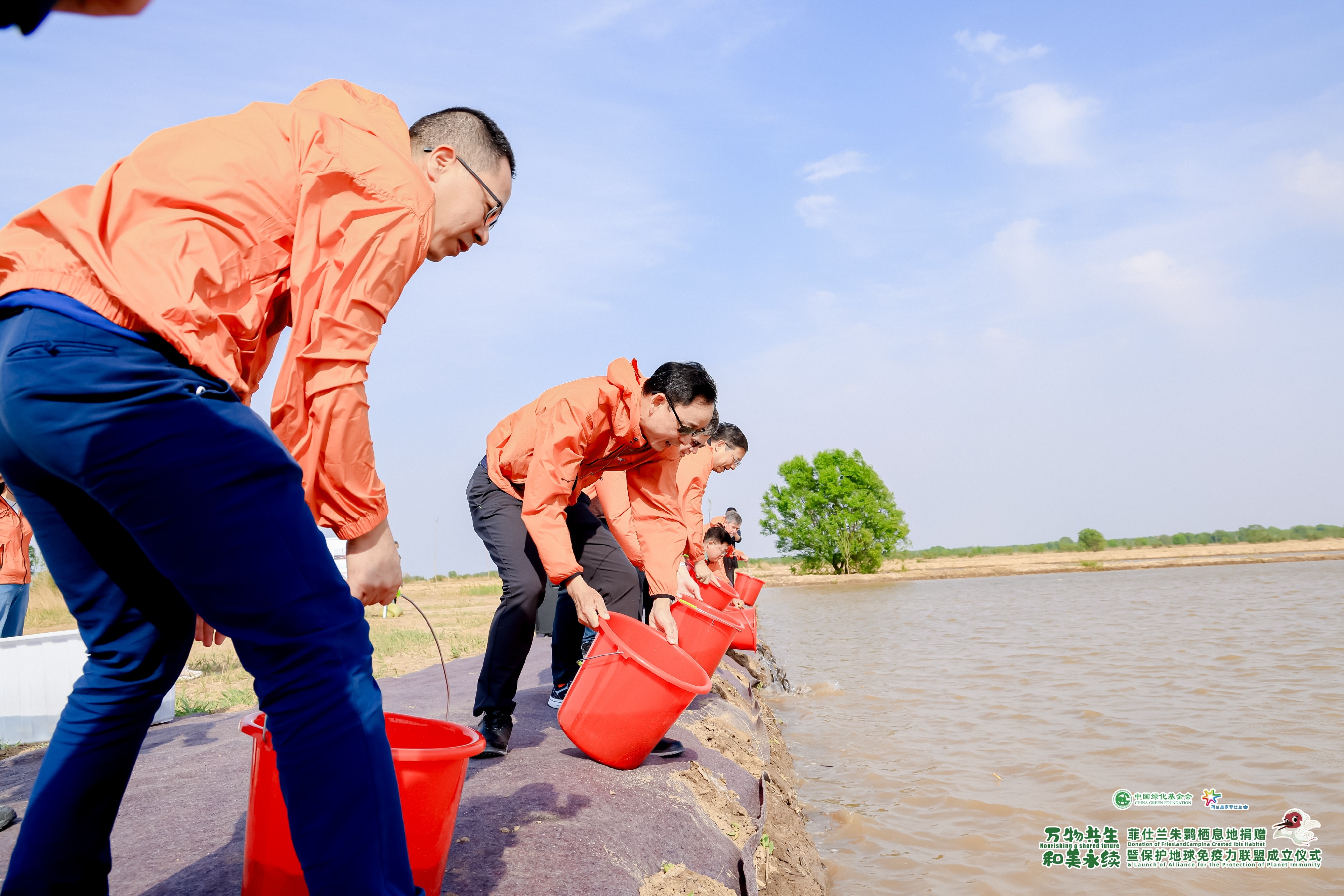 仪式后,嘉宾们共同为菲仕兰朱鹮栖息地揭牌,并进行泥鳅放流活动。菲仕兰朱鹮栖息地位于黄河口管理站朱鹮繁育基地,面积700亩,包括觅食区、栖息区、繁殖区等功能区域。通过专业化功能分区,推动朱鹮种群恢复与湿地保护。