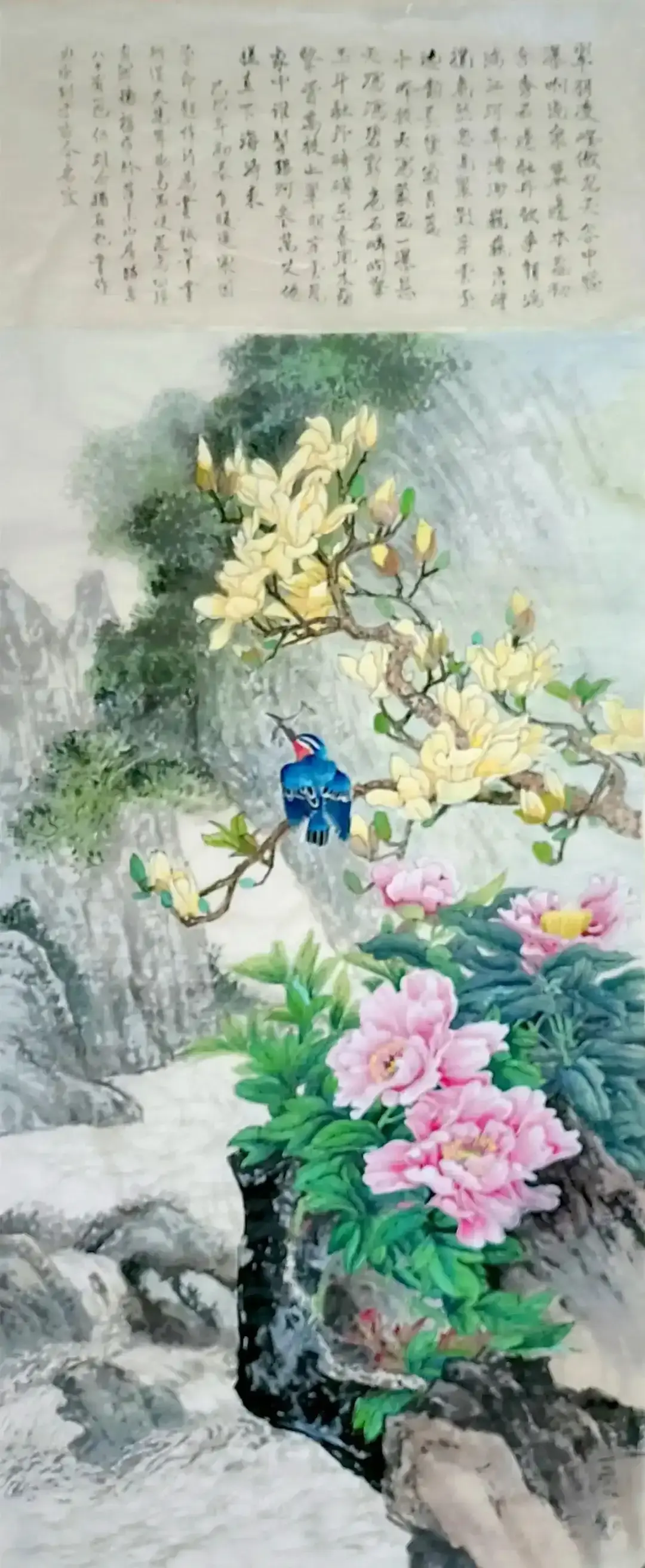 翎境画是近年来提出的中国画创新概念,特指融合山水与花鸟两大画科、追求“动静相宜、景情交融”的大境界绘画形式。其名称中“翎”代指花鸟画中的翎羽细节,“境”则象征山水画的宏阔空间,旨在通过二者的有机结合,构建兼具精微刻画与深远意境的画面体系。虽然这一术语属于现代归纳,但其艺术渊源可追溯至宋元时期的绘画实践,并在明清阶段得到进一步深化。