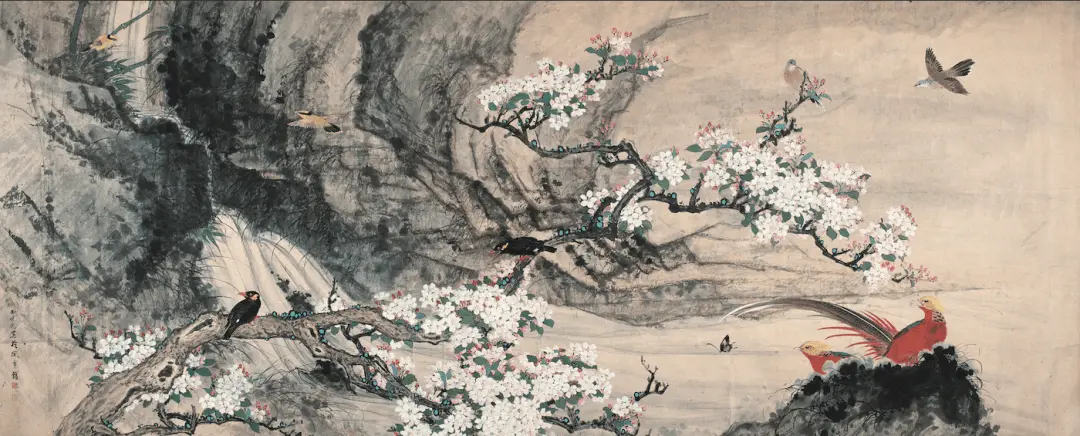 “翎境画”作为中国画的一个重要分支,特指融合山水与花鸟、追求宏大自然境界的绘画形式。其艺术实践源流可追溯至宋元,如南宋马远《梅石溪凫图》已初具以小景山水烘托翎毛生趣的雏形;元代王渊则以水墨皴染,将锦鸡等主题置于更具山水意蕴的环境中。历经明清吕纪、恽寿平等人的深化,此画风逐步从技法融合升华为系统的美学追求,最终在近现代形成“翎境画”这一明确概念,体现了中国画科间相互渗透、追求意境统一的深厚传统。