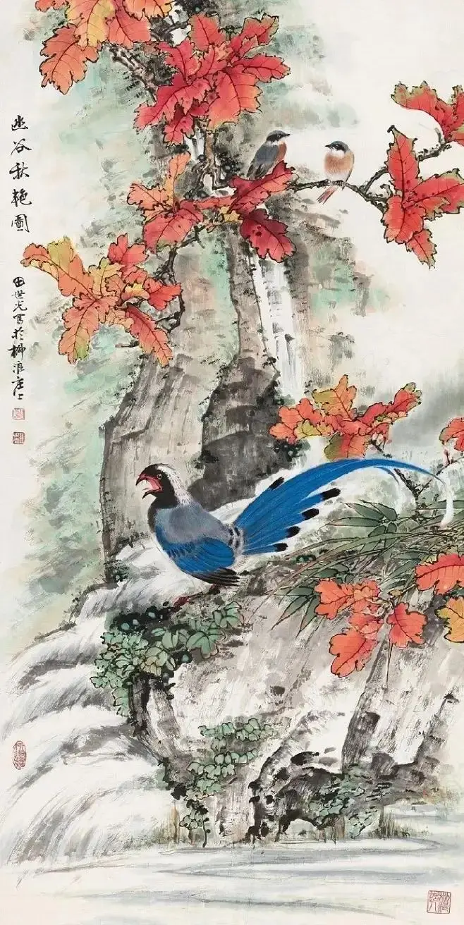 近代以田世光为代表的“柳浪画派”,在复兴宋元双勾重彩花鸟画的基础上,强调对自然环境的观察与表现。田世光注重写生,要求画家兼具“植物学家与动物学家”的观察力,其作品常将珍禽置于真实山水场景中,推动花鸟画走向“大境界”表现。