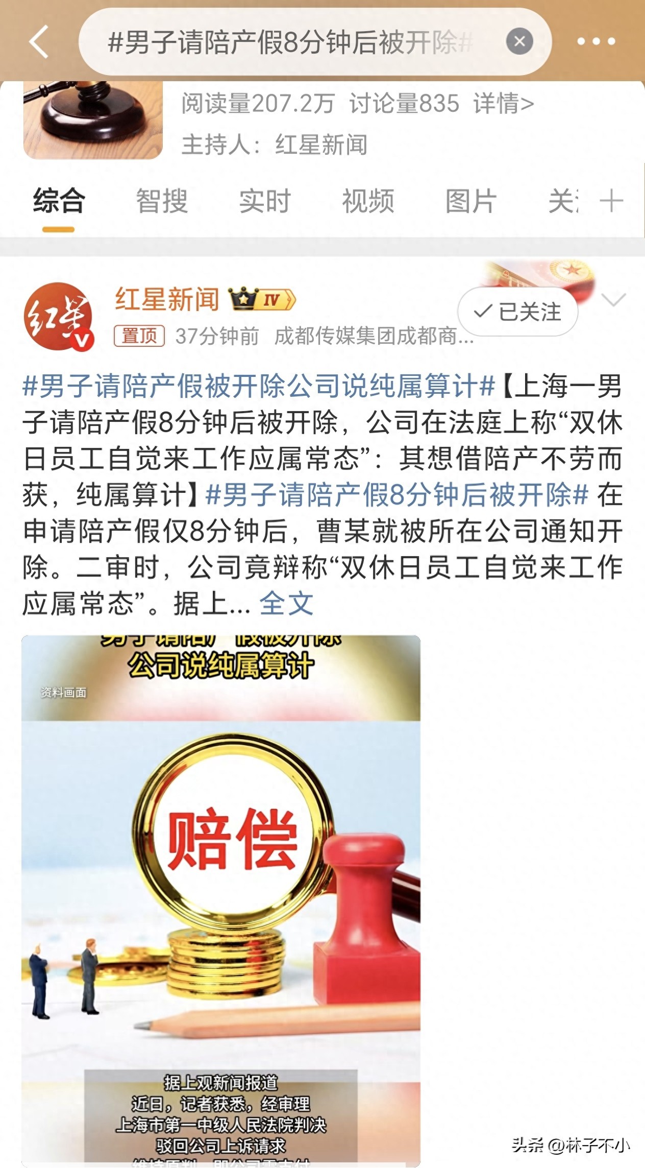 媒体报道男子请陪产假被开除公司说纯属算计2025年11月21日,据红星新闻报道,上海,曹某经历了“请陪产假8分钟后被开除”的事情。