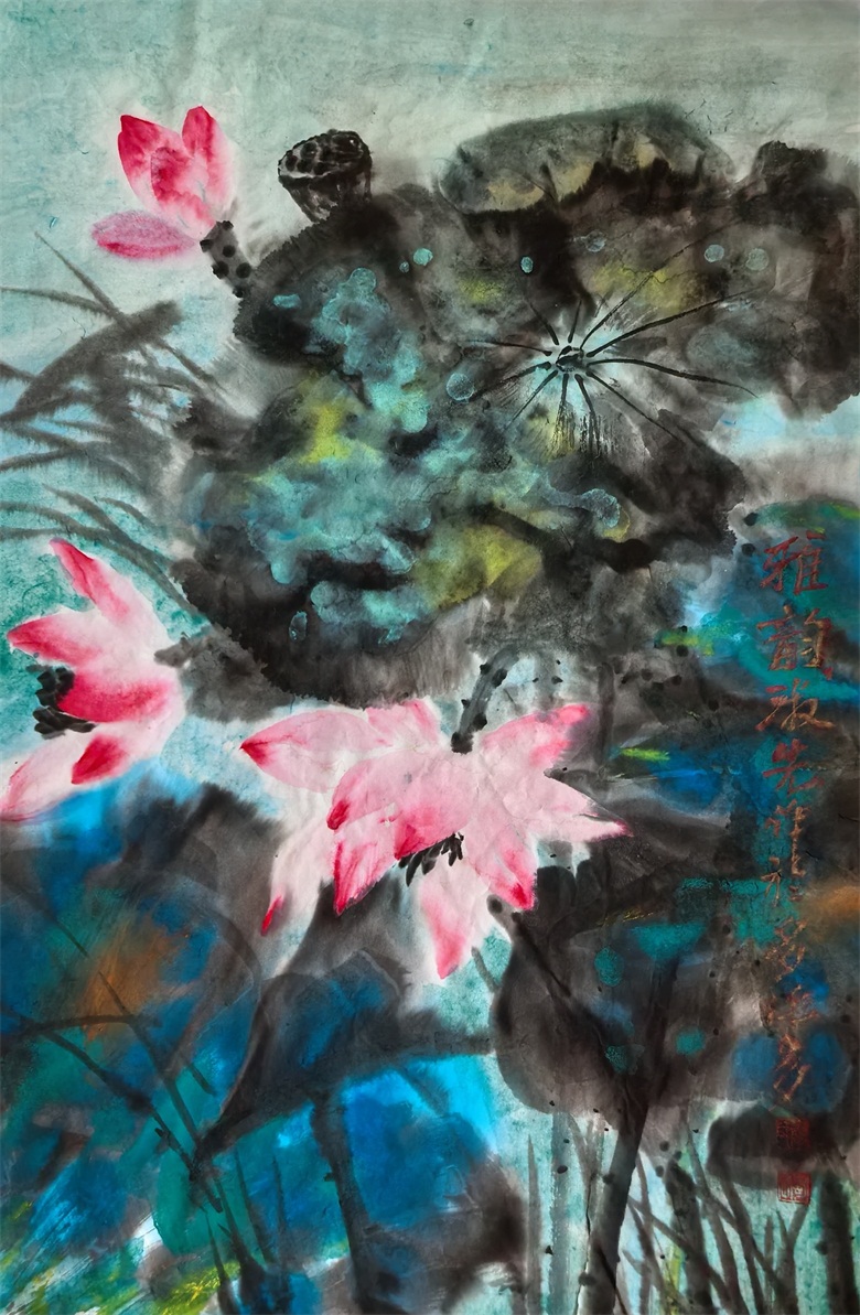 放眼当代画坛,很多“写意”名家皆因“笔墨至上”而失之于细腻、失之于精工,多流于“唯笔墨而笔墨”的肤浅,呈现出掩饰不住的潦草、杂乱,而很多“工笔”名家,自始至终以“工笔而工笔”,既不敢放开,也不越雷池,由于常年拘泥于工笔,而一心想着“气韵生动”,却因技法单一而失之于“气韵生动”,更不要说写意了,一旦尝试写意,则捉襟见肘。廖淑先好像意识到了这一点,她尝试着创作写意绘画、尝试着画一些色彩的意象表达(或曰:意象彩墨)。由此,把她从“工笔至上”之中解脱出来,不再一味“工笔”,从而使其“工笔”不失“细腻”“精工”之时,多了几分写意的韵味,而写意也在“工”的“尽精微”之中,写心、达意、畅情。