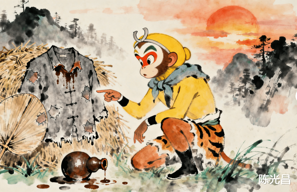 孙小圣揉着发疼的屁股,正想骂骂咧咧,目光却被不远处草堆里的一件破衣吸引。那衣服灰扑扑的,打满了补丁,领口还沾着几块油渍,看着破破烂烂,却透着一股说不出的自在劲儿。旁边还放着一把掉了齿的破蒲扇和一个酒葫芦,葫芦口还残留着几滴酒渍,散发出淡淡的酒香。