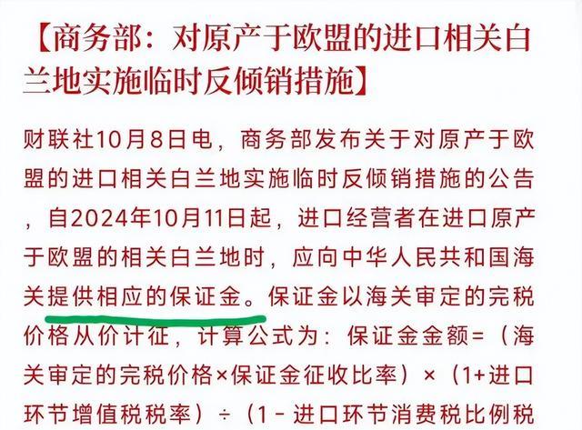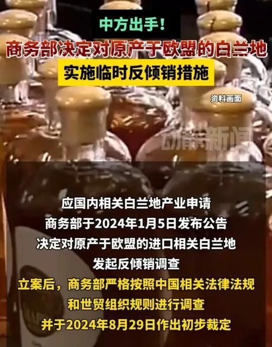 而现在,中国采取了针对欧盟白兰地的反倾销措施,直接征收高达40%的保证金。这个比例可不小,虽然官方说的是调查期间的临时性保证金,但是明眼人都知道,这笔钱最终全额退还的可能性并不大。