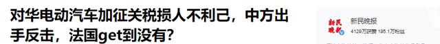 新民晚报——对华电动汽车加征关税损人不利己,中方出手反击,法国get到没有