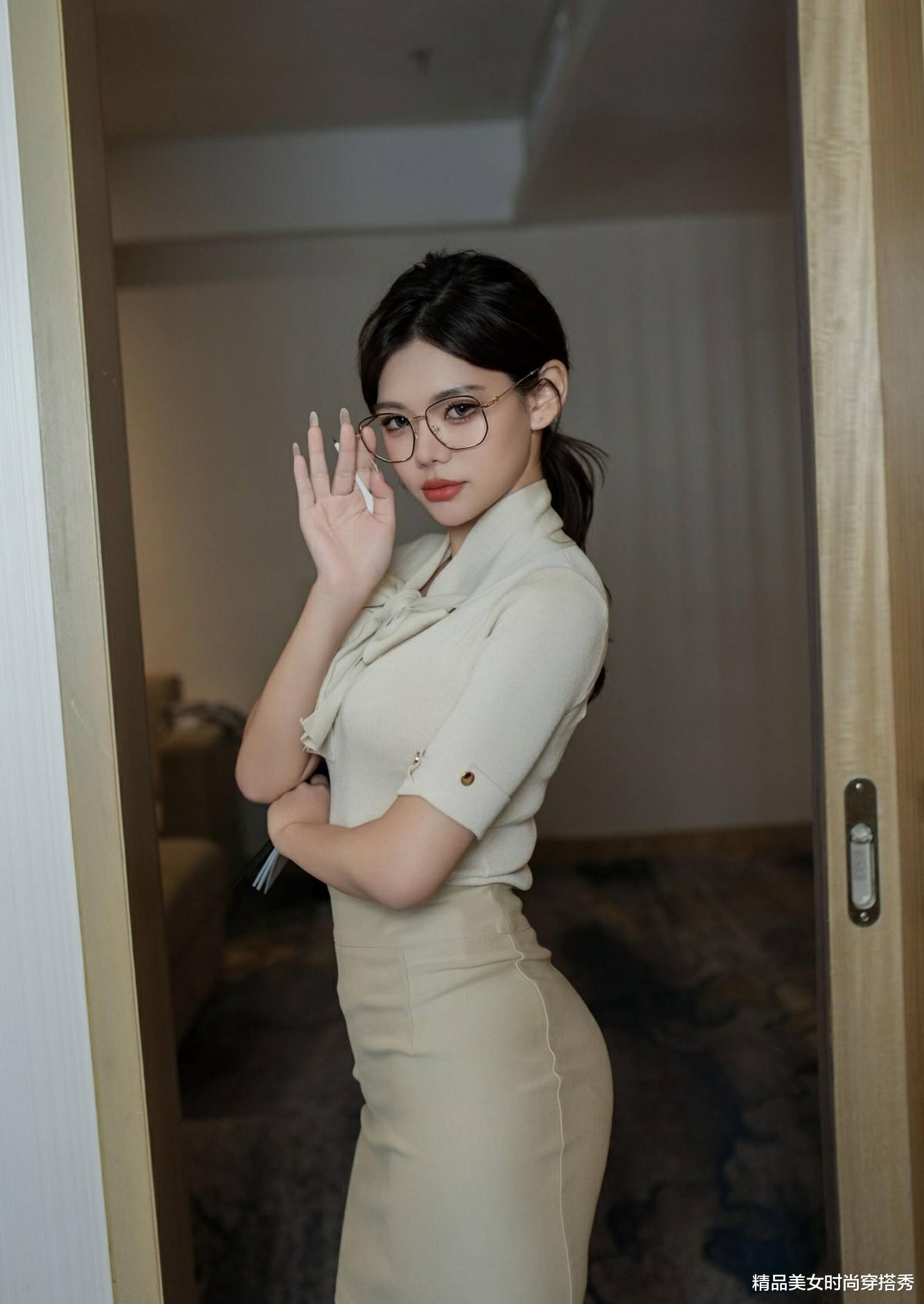 米色蝴蝶结飘带针织短袖,温柔中透露出知性的气质,仿佛是职场中的一抹清新春风。搭配同色系的高腰包臀短裙,不仅拉长了腿部线条,更显得干练利落。👠