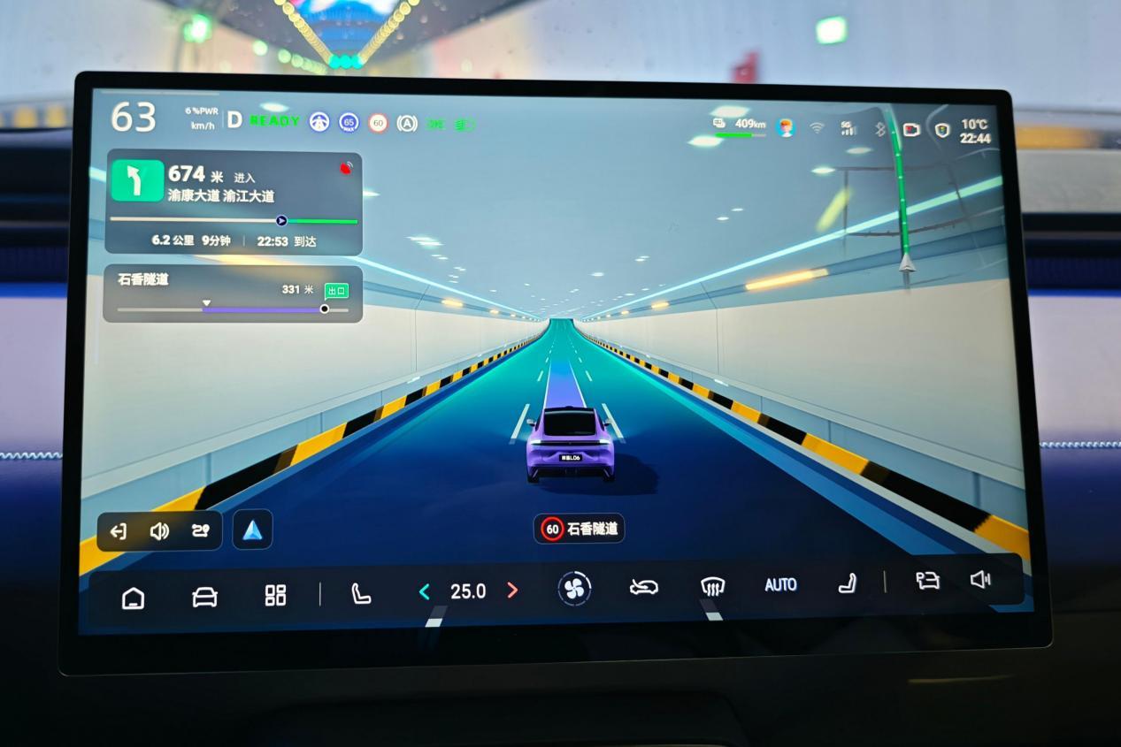 座舱的交互流畅度和舒适配置,直接影响日常用车的体验。深蓝L06搭载的3nm车规级座舱芯片,算力达53TOPS,同时开导航、听音乐后台也不卡顿。50英寸AR-HUD搭配15.6英寸向日葵旋转屏,取消了传统仪表盘,信息显示清晰直观,导航能直接投射在前挡风上,兼顾安全与便捷。值得一提的是,深蓝L06全系都具备四图融合导航,把基础导航、车道级导航、SR 渲染和环境重构相融合,让整车感知更加灵敏,还能识别复杂路况、障碍物,哪怕是小区、停车场的内部路,也能实现无图寻路。