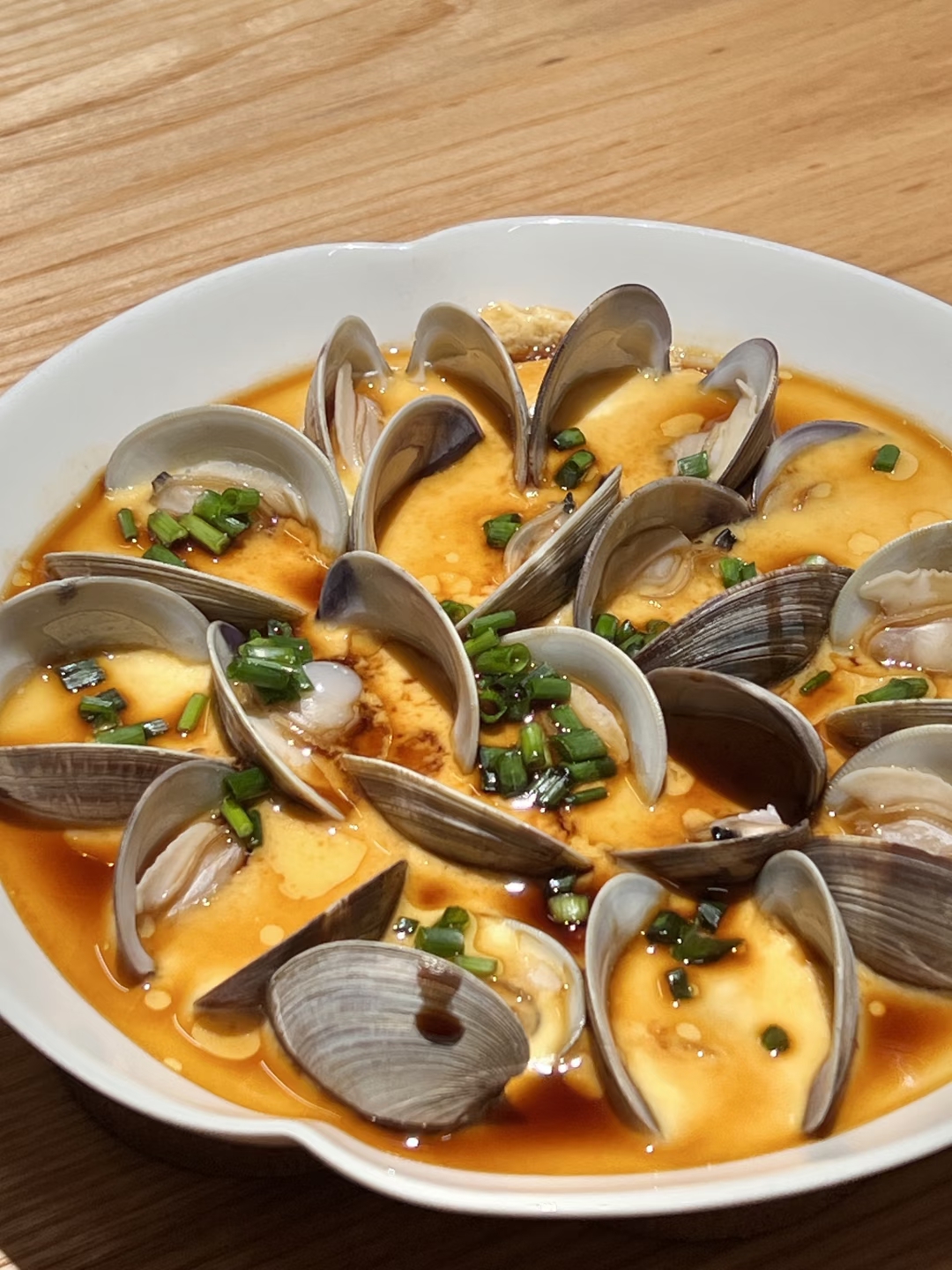 现在每次做这道菜,总想起母亲系着围裙、眯着眼睛摆蛤蜊的样子。姑姑第一次吃时,边挖第二勺边笑:“这蛋比布丁还嫩,蛤蜊像在嘴里跳舞!”确实,蛤蜊的鲜甜渗进蛋里,蛋的嫩滑裹着蛤蜊的肉,一口下去,从舌尖暖到胃里,连平时挑食的表弟都抢着添饭。