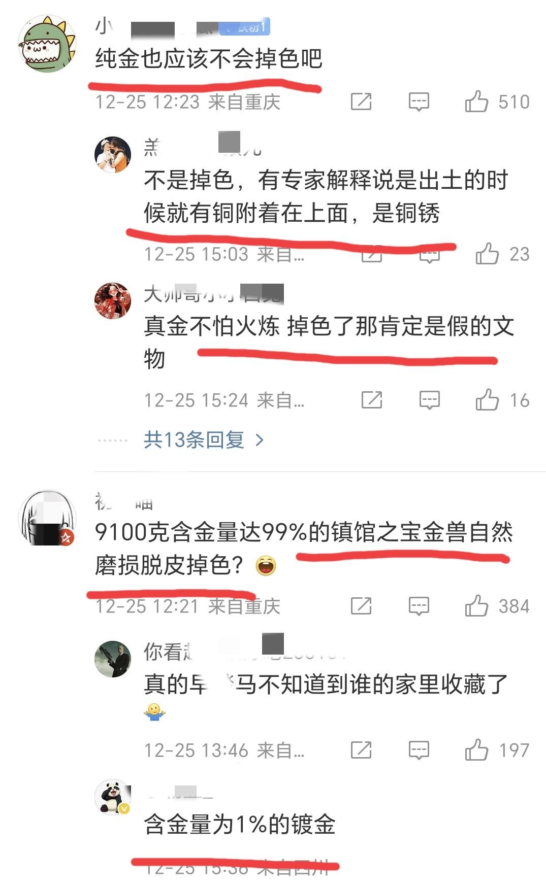 也有网友表示,既然真金不怕火炼,既然掉色那就是假文物。