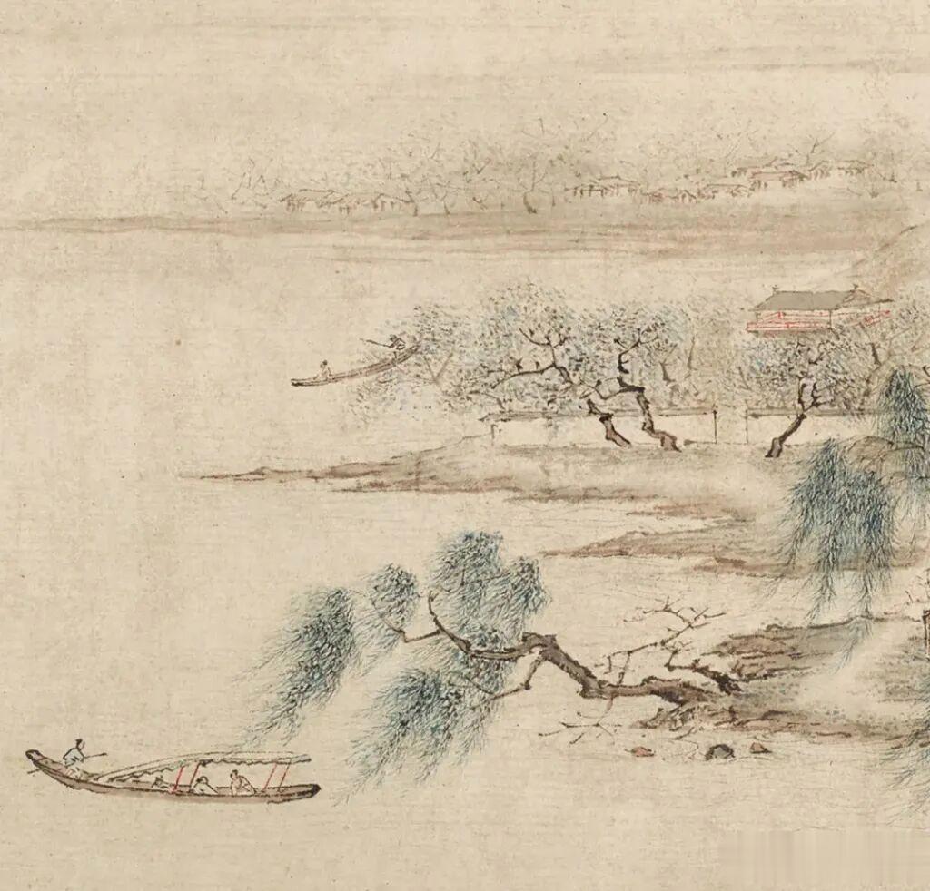 庞莱臣后人捐赠南博的《江南春》图卷局部