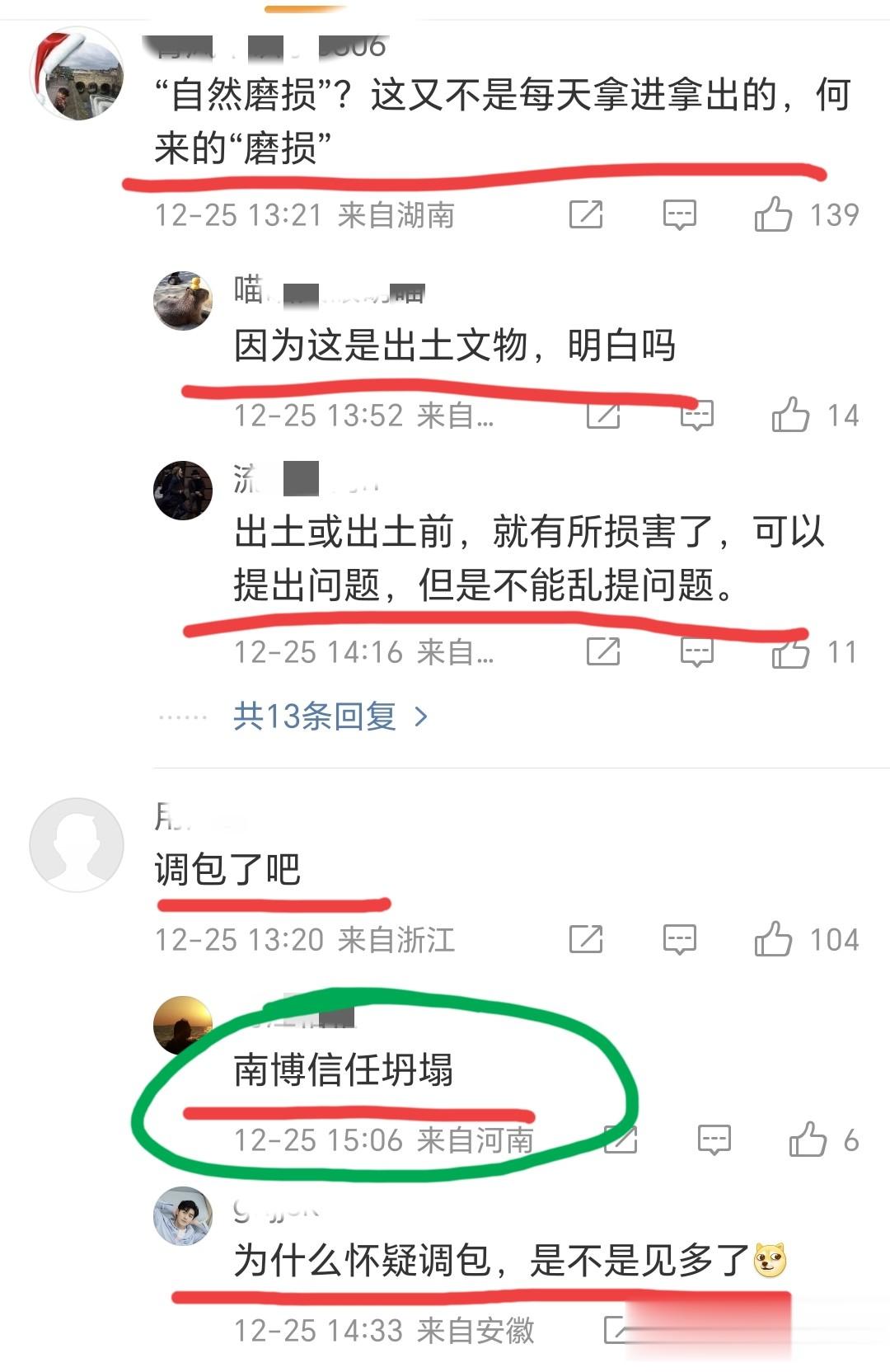 至于是不是在侮辱网友的智商,我是无法确定,唯一能够确定的就是南博的回复:“属于出土文物正常现象。”
