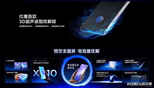 屏幕方面,红魔11 Pro系列搭载独家6.85英寸悟空屏2.0,1.5K全面屏95.3%屏占比,支持144Hz高刷新率,0挖孔0遮挡0妥协,彻底告别刘海屏和挖孔屏的视野割裂,实现“所见之处皆为屏幕”的沉浸体验。除了大屏幕的极致享受,红魔11 Pro系列首发采用X10屏下发光材料,功耗降低10%,寿命提升30%,同时改善了色偏和拖影问题。护眼方面,星盾护眼技术2.0为玩家的眼睛保驾护航,通过AI环境光感调整优化,长效呵护你的用眼健康,给玩家带来沉浸式的游戏体验。值得一提的是,红魔首款3D超声波指纹解锁,亮屏解锁快25% ,熄屏解锁快50%,黑夜解锁不刺眼。
