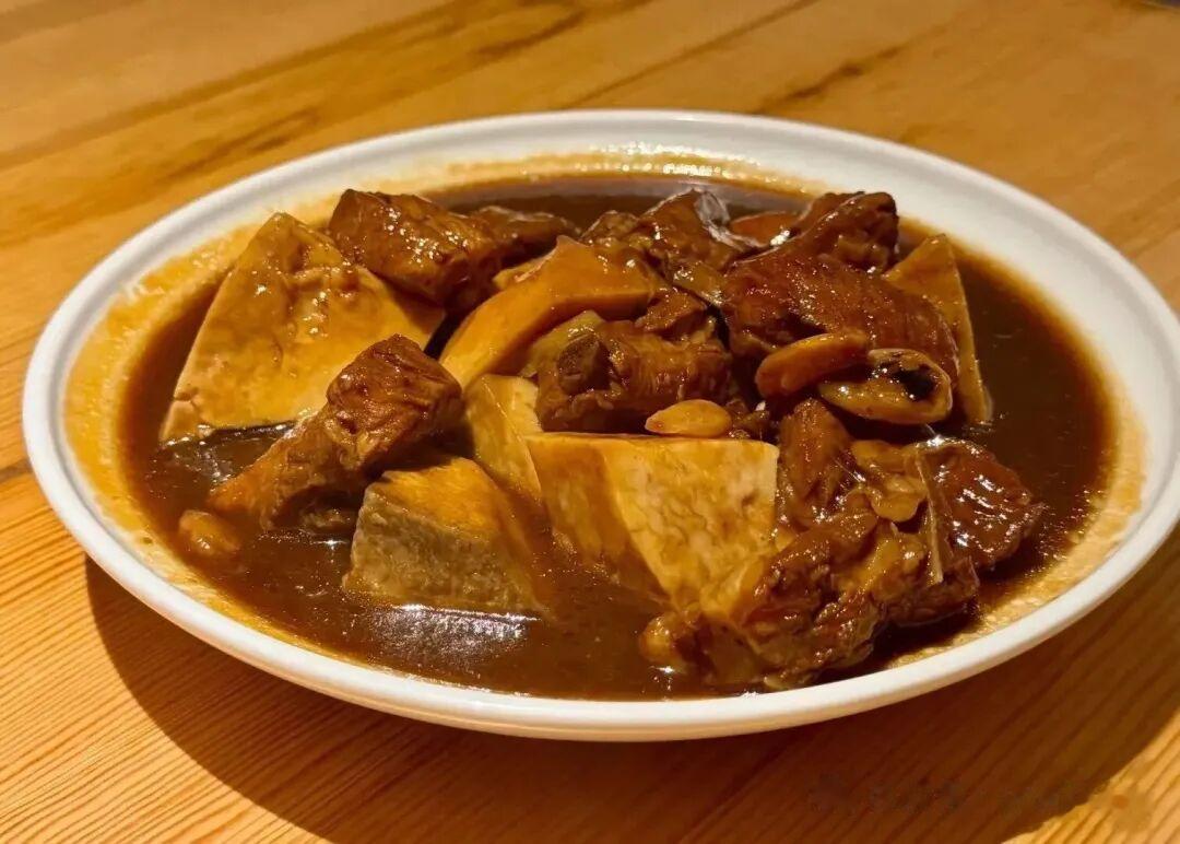 香芋仔排这也是一道时令菜,秋天是芋头上市的季节,这道香芋仔排芋头炖得绵密化沙,用筷子轻轻一压就散开,仔排选的是肉厚的肋排,炖得骨肉将离未离,肉质软烂却不失嚼劲,酱汁是典型的江浙咸甜口,浓稠度刚好能挂在食材上。我喜欢把芋头捣碎,拌着酱汁和米饭一起吃,每一粒米都裹上了香气,让人忍不住多添一碗饭。