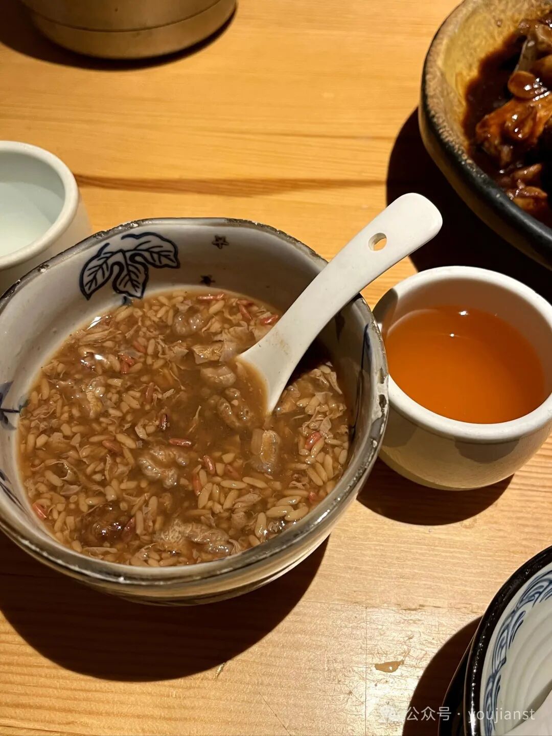 用酒酿作底,酒香醇厚却不呛人,里面加入了核桃与蛋花,核桃入口带着坚果特有的油脂香,与酒酿的甜味相得益彰,可惜现在杭州还是在夏天,待天凉下来时来一碗,从喉咙暖到胃里,整个人都舒坦了。不过记得要趁热吃,放久了核桃变软,口感就打了折扣。