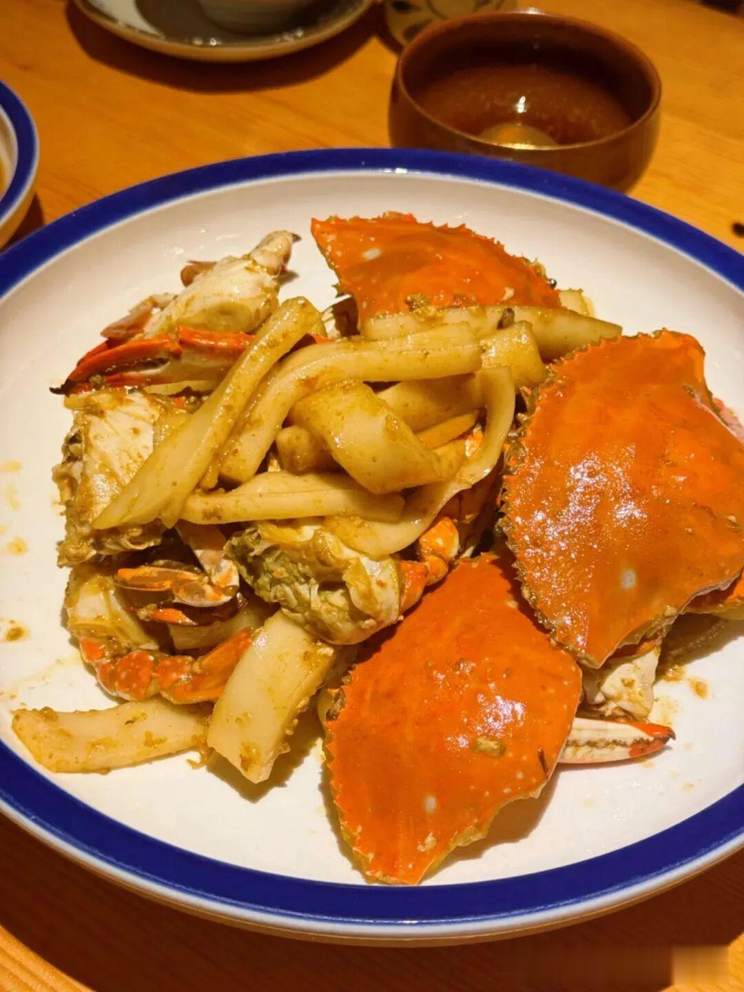 梭子蟹炒年糕现在的梭子蟹正是肥美之时,保留了海鲜的鲜味,加上软糯的年糕的陪跑,有来自大海的鲜气,也有来自糯米的柔软,鲜美与柔软的结合刚好。