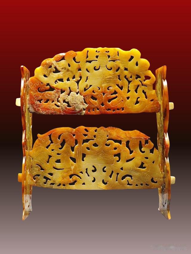 东汉时期文物,1969 年出土于河北定州中山王刘畅墓,现藏于定州市博物馆 。座屏由四块镂空玉片接插而成,上下屏正中为西王母形象(一说上屏正中为东王公)。上屏西王母左右戴胜,端坐云气仙台,旁有羽人、九尾狐和朱雀;下屏西王母蓬发戴胜,端坐云端,旁有仙女手持华盖,另有玄武等神瑞分列。它反映了当时人们的神仙信仰与祥瑞观念,是东汉玉器中不可多得的艺术珍品 。