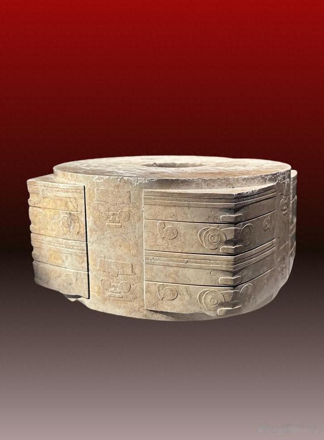 1986年杭州市余杭区反山12号墓出土, 整器重约6500克,形体宽阔硕大,纹饰独特繁缛,为良渚文化玉琮之首,堪称“琮王”。器型外方内圆,上大下小,中间对钻圆孔。琮体四面直槽内上下各琢刻一个具象的神人兽面图像,神人头戴羽冠,骑跨在一神兽上,图案采用浅浮雕和线刻技法雕琢而成。在角尺形的长方形凸面上,每两节琢刻一组抽象的神人兽面图案,以转角为中轴线向两侧展开,这种角部的人兽组合结构,是良渚玉琮纹饰的基本特征。兽面的两侧各浅浮雕一变形夸张的鸟纹。琮的功能说法不一,可能是神权与王权的象征。 2002年列入首批禁止出境文物。