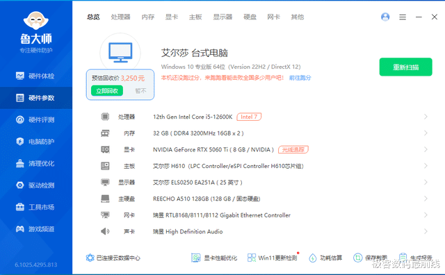 看完显卡的整体规格与外观设计之后,接下来就是进入实测部分。这里我们使用英特尔的酷睿i5-12600K处理器搭配32GB的DDR4 3200内存以及艾尔莎自家的H610主板进行测试。