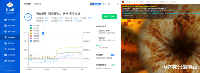 最后是显卡的温度测试,在使用Furmark进行满载拷机之下,艾尔莎BOMID RTX5060Ti幻雷者的温度维持在了68℃左右,散热效果十分出色。