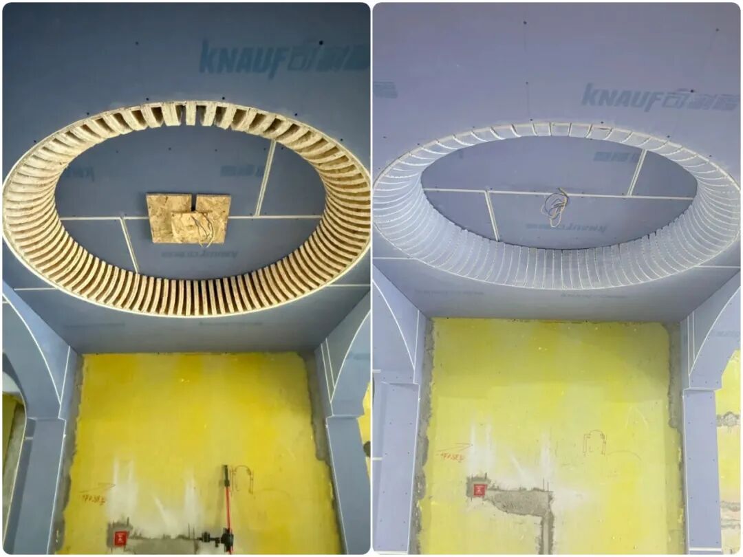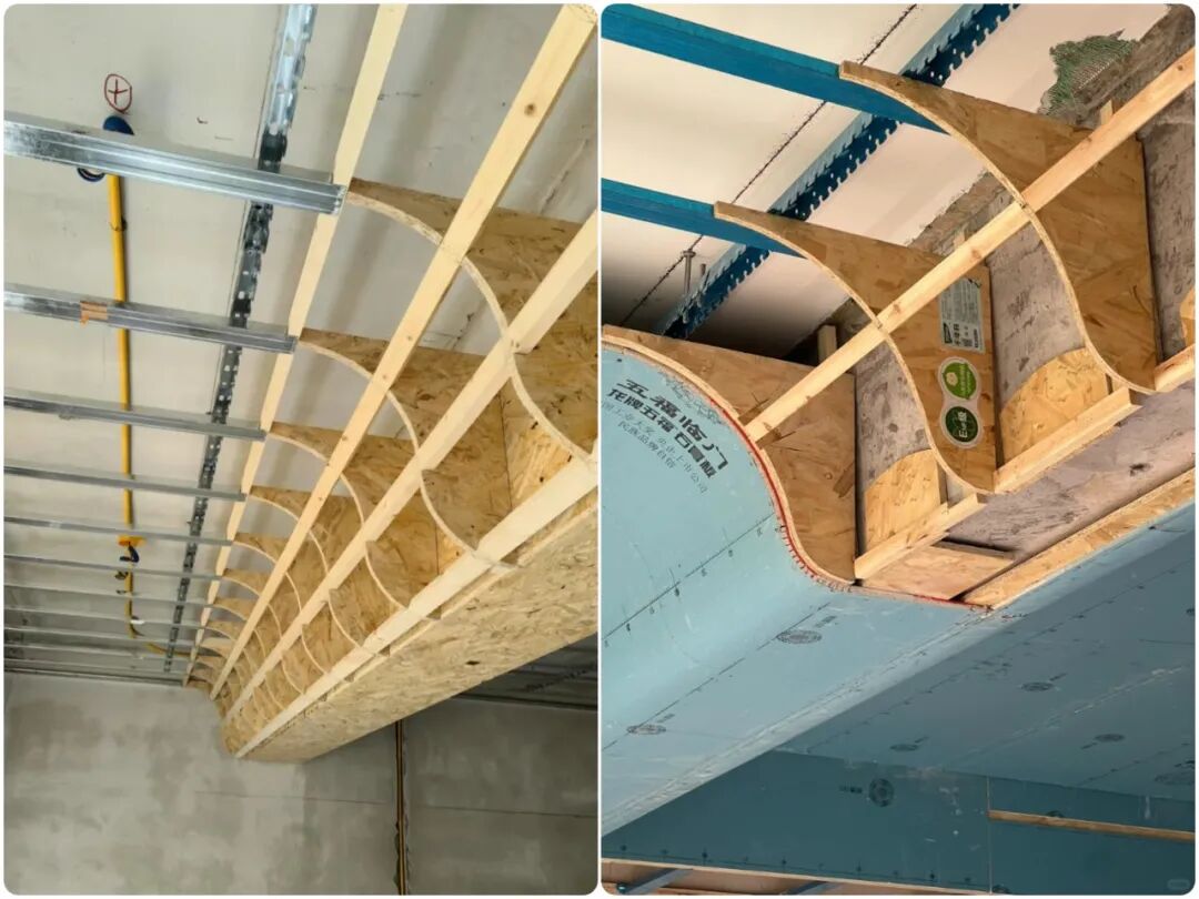 ▲超火的弧形吊顶,欧松板打底做弧度造型,看着都复杂,有没有更简单的做法吗?