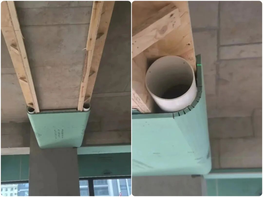 ▲顶面小阳角PVC水管直接上阵,弧度超顺,省钱又省力。