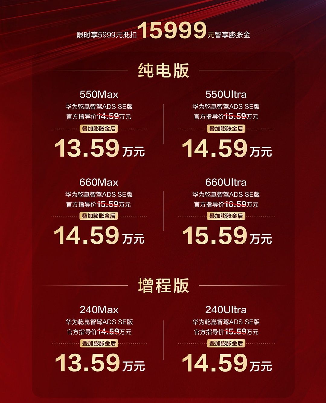 在动力续航上,新车的峰值功率为200kW,轮端扭矩为3814N·m,百公里加速时间仅6.2s,其中纯电版车型的CLTC续航里程提供550km和660km两种规格,增程版车型满油满电CLTC续航里程可达1500km。