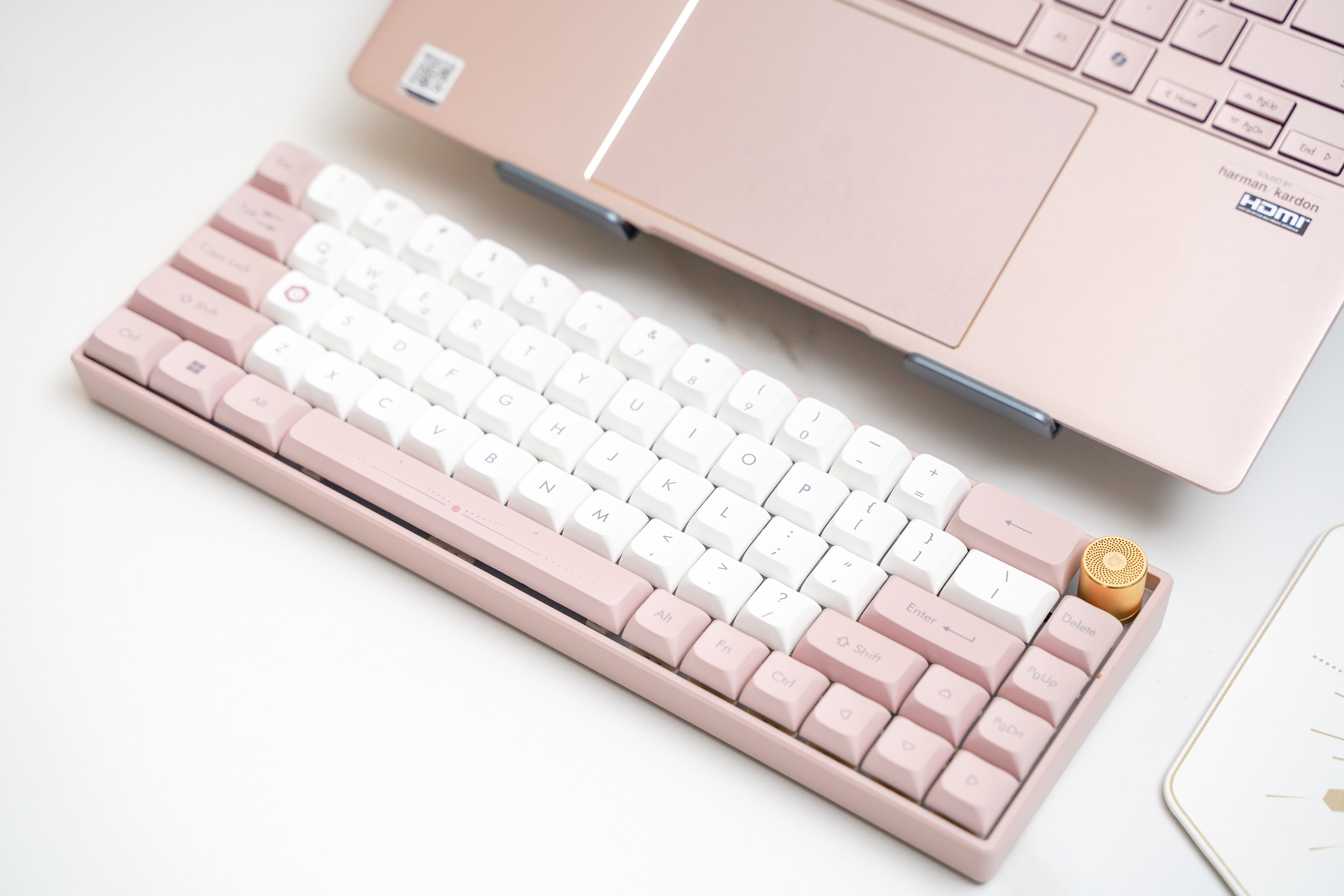 另外还可以选购同款香氛机械键盘,65%配列精致小巧,节省桌面空间同时便于携带。共有鸢尾紫、茉莉绿以及奇迹花园三个配色,其中奇迹花园是和华硕a豆14 Air香氛版颜色最搭配的颜色。