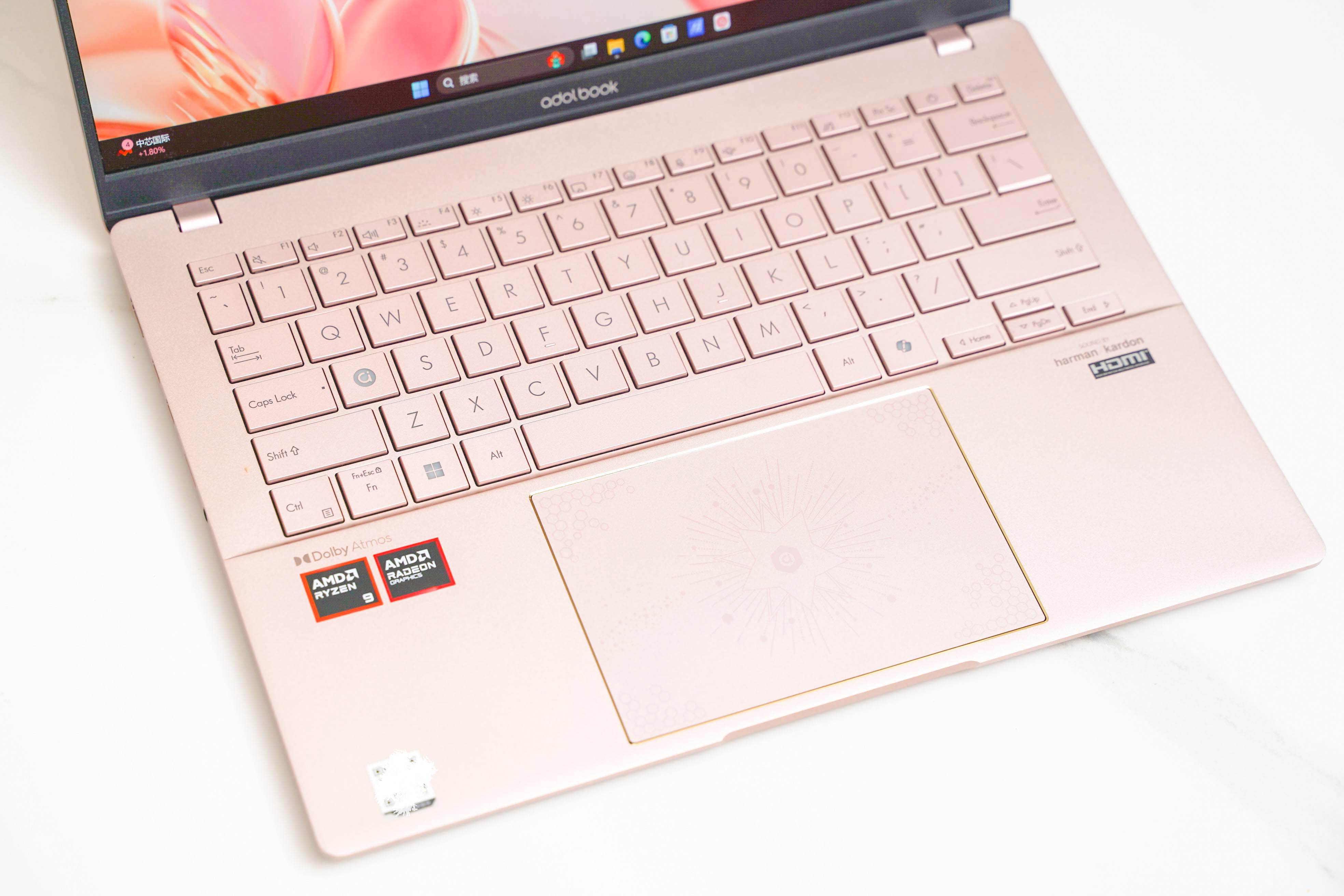 当轻薄本设计同质化愈发严重的今天,让人一见倾心的设计似乎越来越少,华硕a豆 14 Air 香氛版真的会让你感觉与众不同。采用瑰密粉金配色,哑光质感不论是从哪个角度都能感受到它的高级,而且笔记本触感细腻不留指纹。