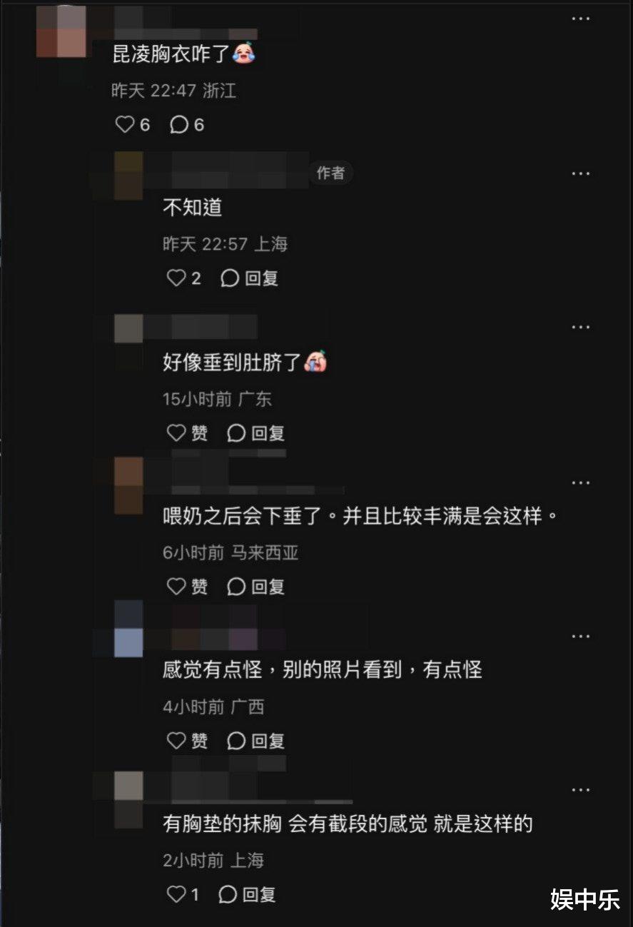 但网友的显微镜技能永远超乎想象!镜头扫到观众席特写时,弹幕突然炸出满屏问号:“昆凌这胸衣是连夜逃出重力场了?”“垂坠感直接拉到肚脐眼设计师出来挨打!”不过也有宝妈粉现身说法:哺乳期后胸部下垂多正常,再说衣服自带胸垫空杯能塞进俩网球呢(这比喻我直接笑出鹅叫)