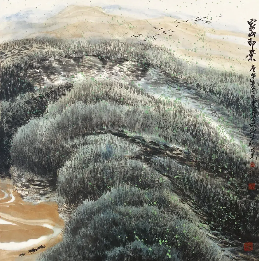 可以说,“太行风情系列”是他从相对写实的乡土表达,迈向更为个人化和结构性探索的重要桥梁。它保留了艺术家对传统笔墨的深刻理解,也为他未来的变法奠定了基础。