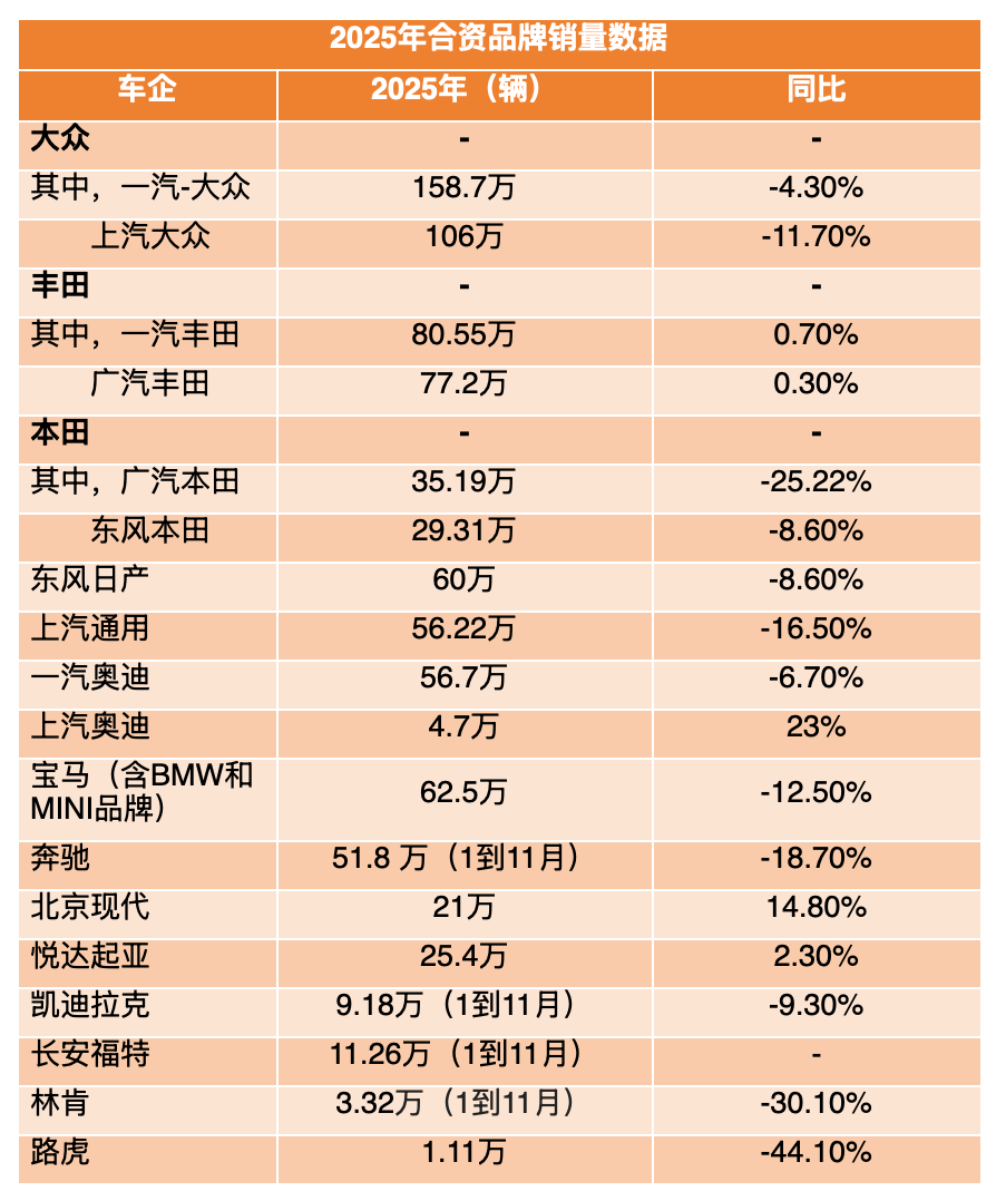 下面我们选取部分主流合资品牌,简单盘一盘它们2025年的KPI。