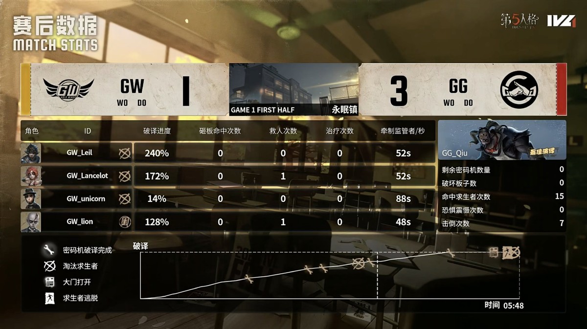 第一局比赛上半轮:GW求生者对阵成都GG监管者