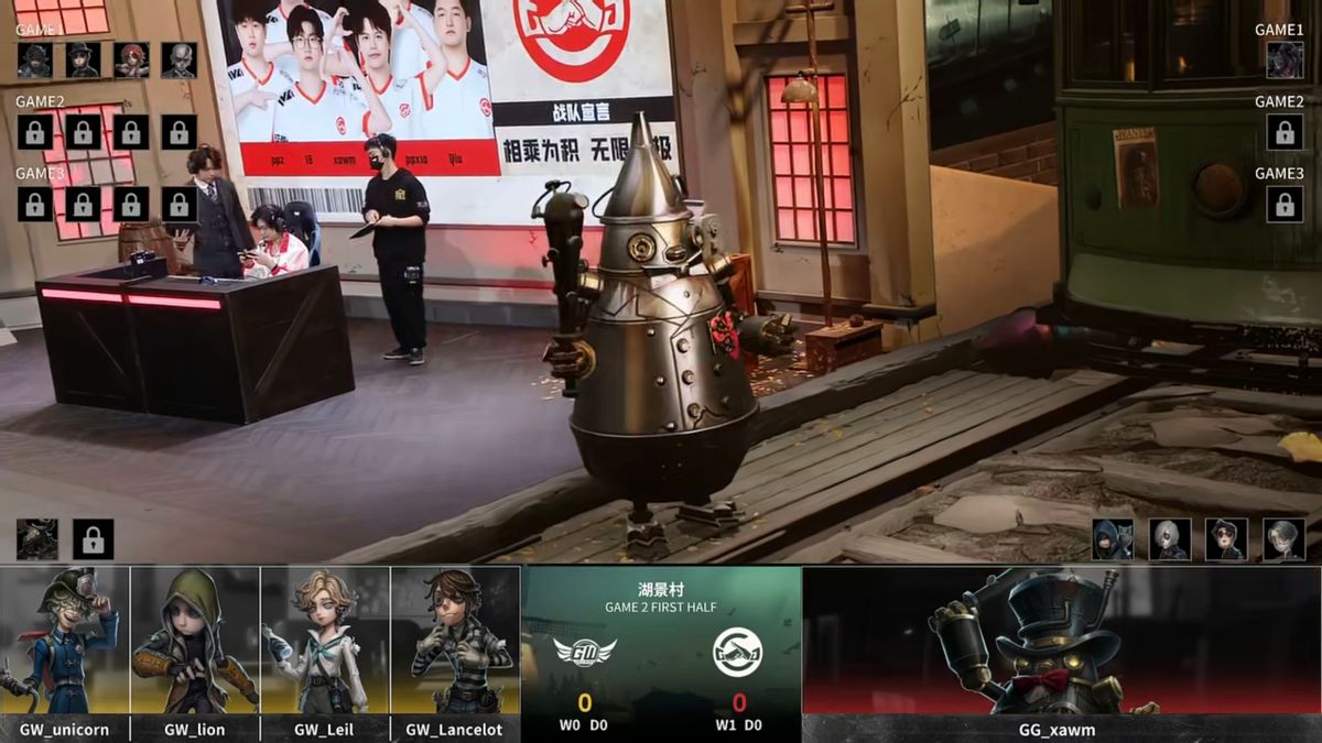 GW的求生者选择了火灾调查员、佣兵、气象学家、“囚徒”(BAN鹿头);成都GG的监管者xawm选择了邦邦。(BAN先知、守墓人、幸运儿、入殓师)